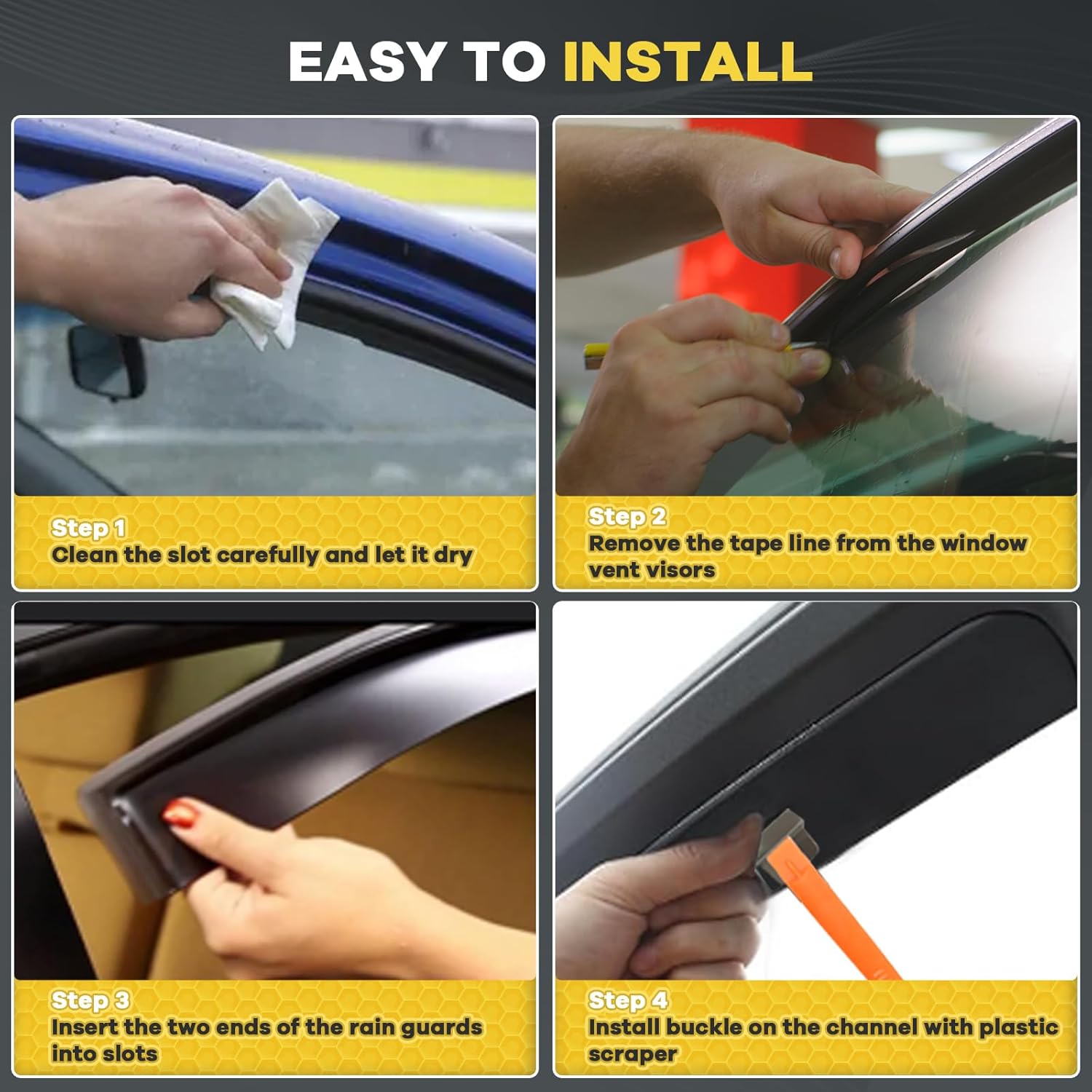 - ăIn Channel Designă CHYKORLA Window vent visors install in the window channel, provides perfect fit and sleek look for your car. No complicated instructions are needed. Attention: Please apply the clip to fix the rain guards