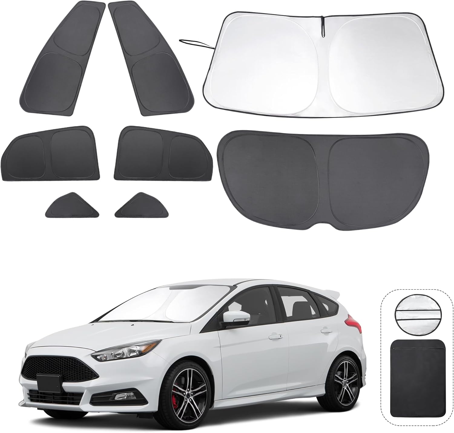 TINGLU Window Shades for Ford Focus 2014-2018 Hatchback Accessories Car Side Full Windows Rear Triangular Windshield Sun Shade Sun UV Rays Privacy Protection 8PCS
