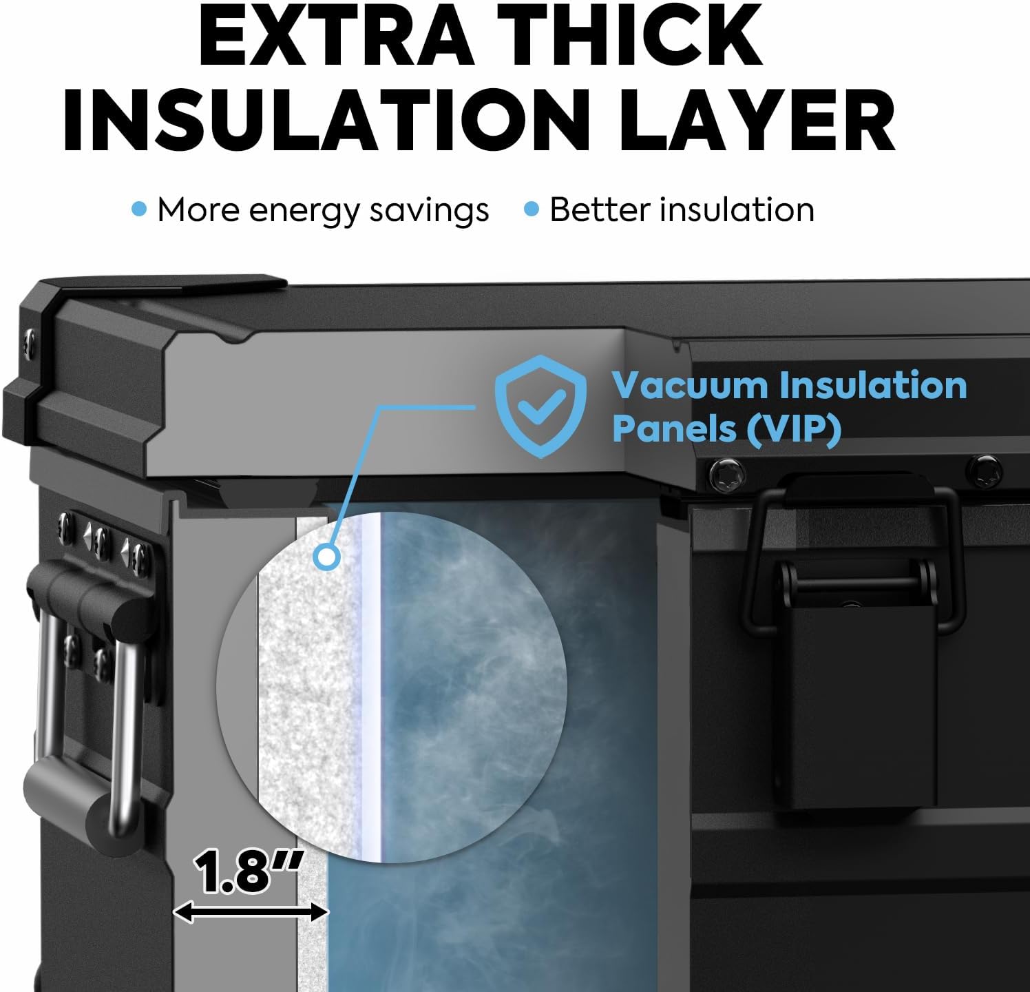 - [Durable Aluminum 12v Portable Fridge Freezer] First all-aluminum car fridge with a corrosion-resistant, high-strength shell to protect components and extend lifespan. Superior heat dissipation boosts cooling efficiency; fully recyclable design.