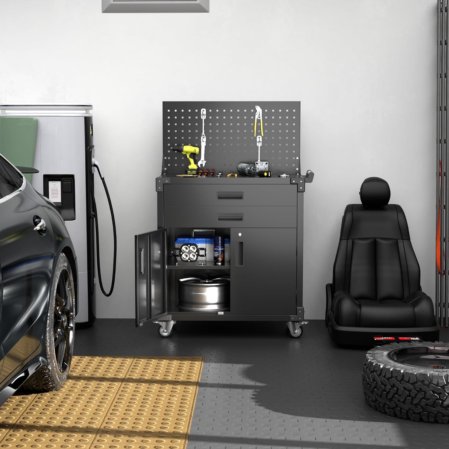 - Multi-Functional Tool Cart: The tool cart is not only suitable for garages and workshops, but also for other occasions such as home repairs, gardening, and outdoor activities. It can be used as a workbench, tool storage cabinet, or mobile workstation.