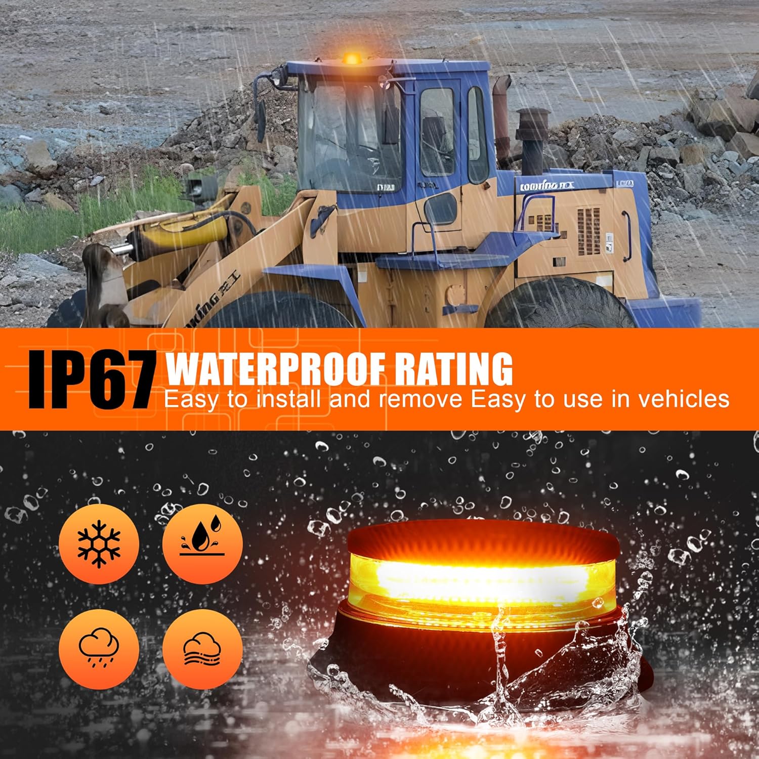 WINECO LED 앰버 스트로브 신호등, 안전 경고 비상 위험 회전 플래시 라이트, 지게차, 트랙터, 골프 카트, ATV, 우편 자동차, 12-24V 마그네틱 베이스 및 영구 마운트