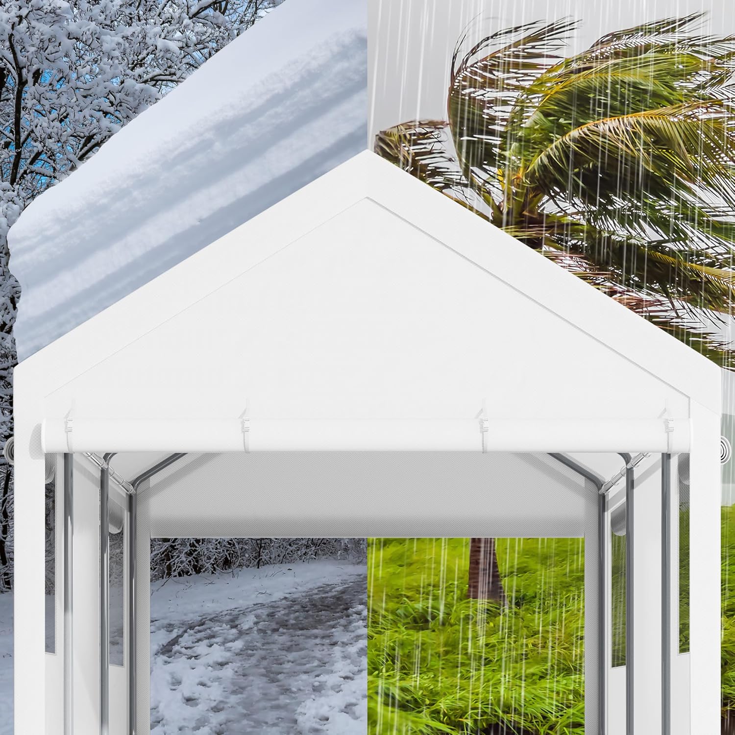 - 【Removable Sidewalls Window and Doors】This carport shelter has 2 removable sidewalls with Roll-up Ventilation Windows. It can help with airflow, and prevent moisture. It also has two removable doors with zippers. You can roll the doors up or down as you wish. Or remove all the sidewalls and doors, only leave the canopy cover on for outdoor activities.