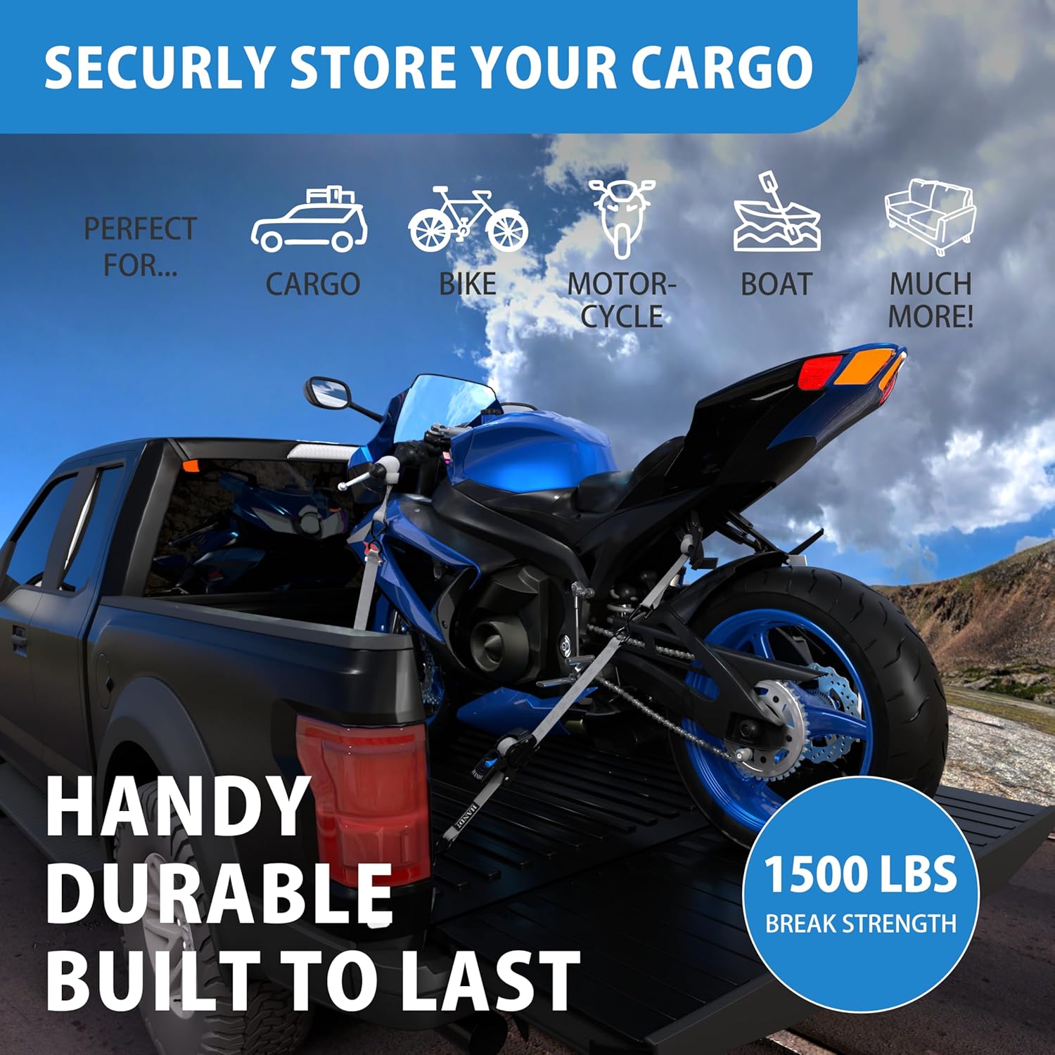 - Time Saver - The included push button retractable ratchet straps case keeps your retractable ratchet strap set always handy. The automatic ratchet straps self retractable tie down straps have a 1500lb break strength making the easy ratchet straps self retractable the perfect retractable tie downs ratchet straps which are the go to automatic straps for trucks due to the auto retractable straps ratchet tie-downs reliability