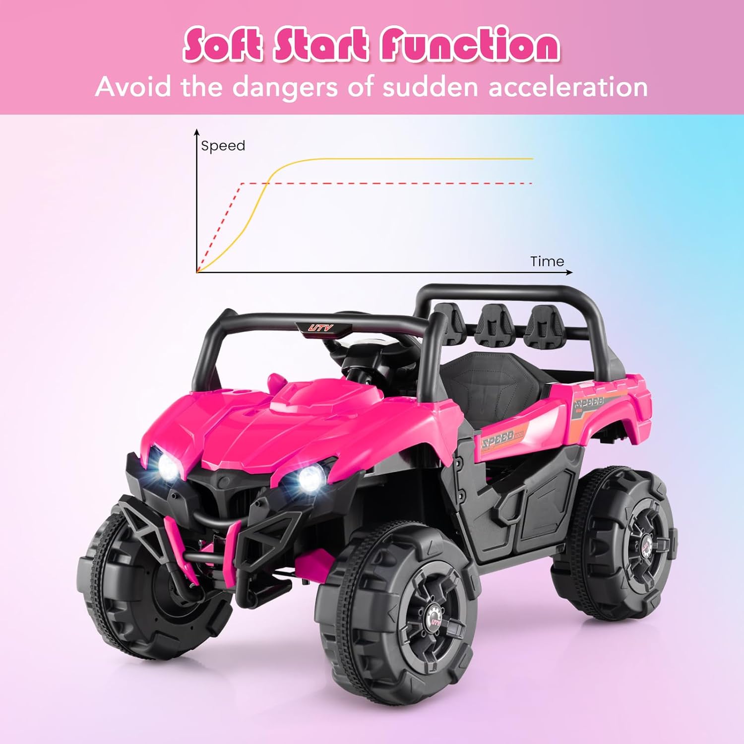 OLAKIDS 12V Ride on Car UTV, Battery Powered Off-Road Kids Electric Vehicles with Remote Control, Music, Horn, MP3, Lights, 3 Speeds, Soft Start, Ride on Truck for Boys Girls (Pink)