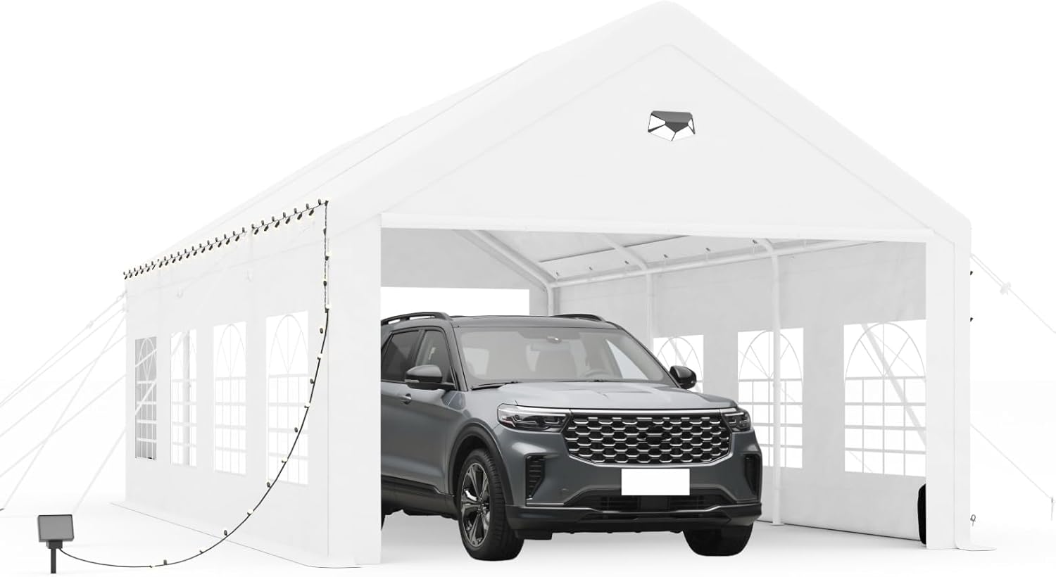 - 【Ventilated Design】: Featuring two mesh windows on each sidewall, this portable garage enhances airflow and reduces moisture, keeping your vehicle dry and protected.