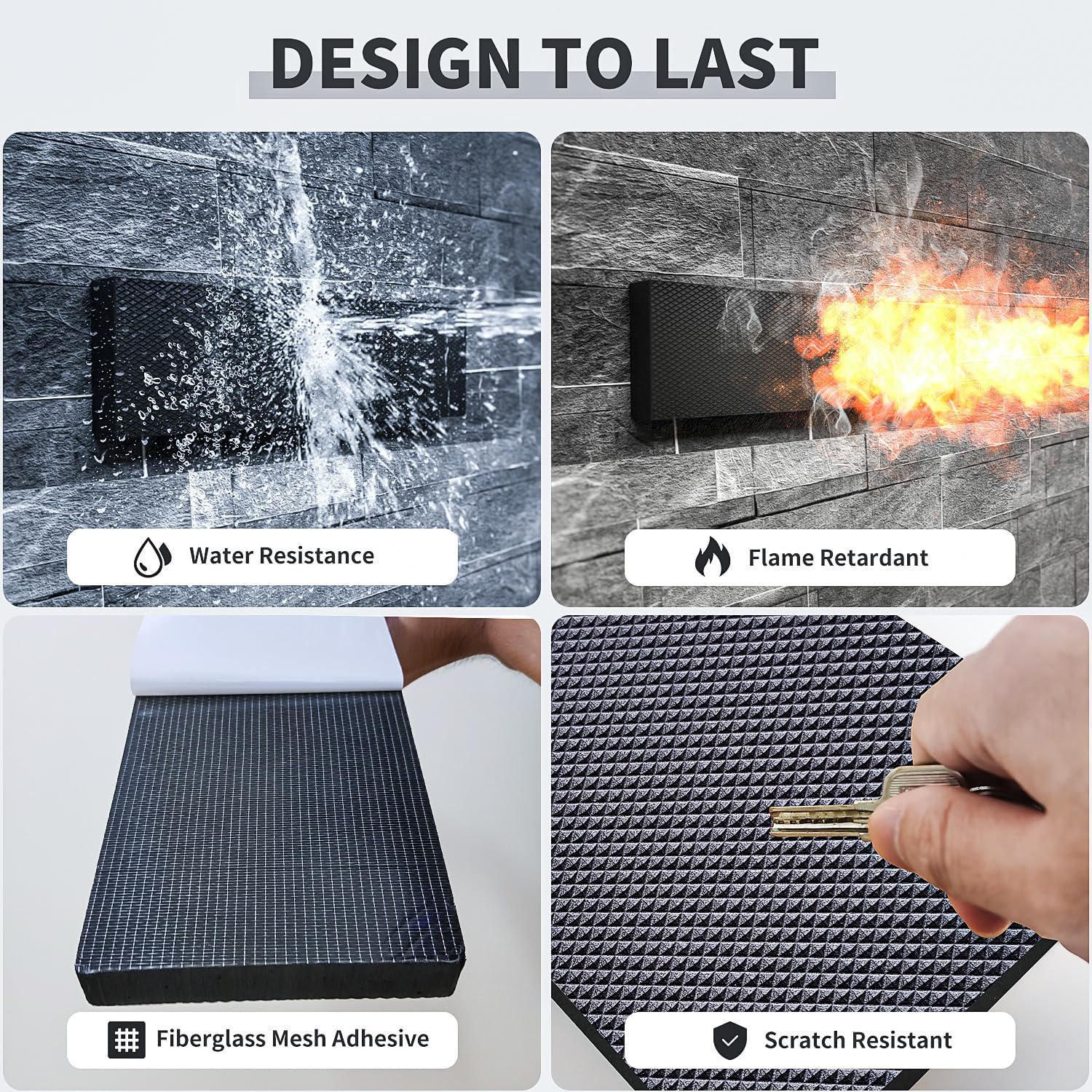 • Fiberglass Mesh Adhesive Structure – The adhesive force is reinforced by its unique integrated back adhesive structure. The interlaced fiberglass allows the wall protectors to be removed without tearing the soft protector or leaving marks on the wall. The non-tearing self-adhesive cover can be peeled off easily.