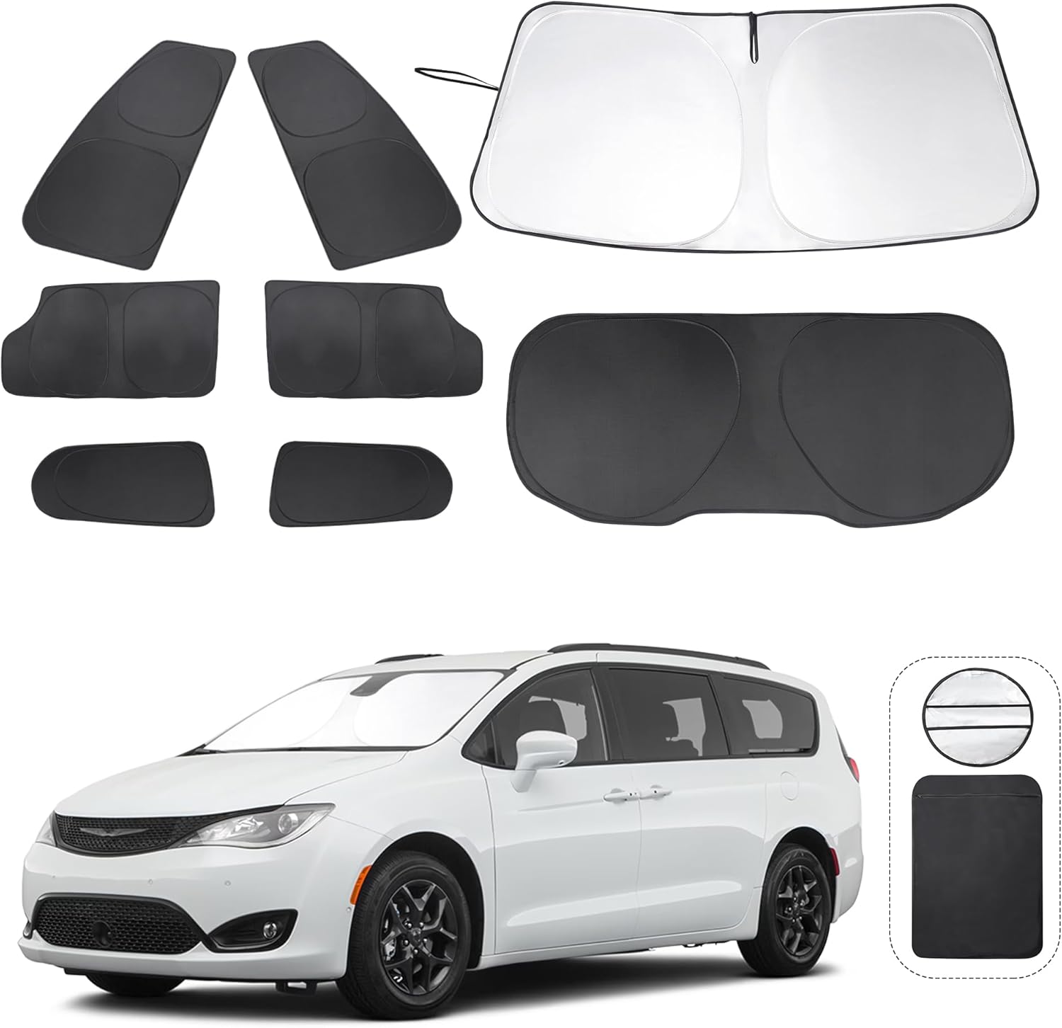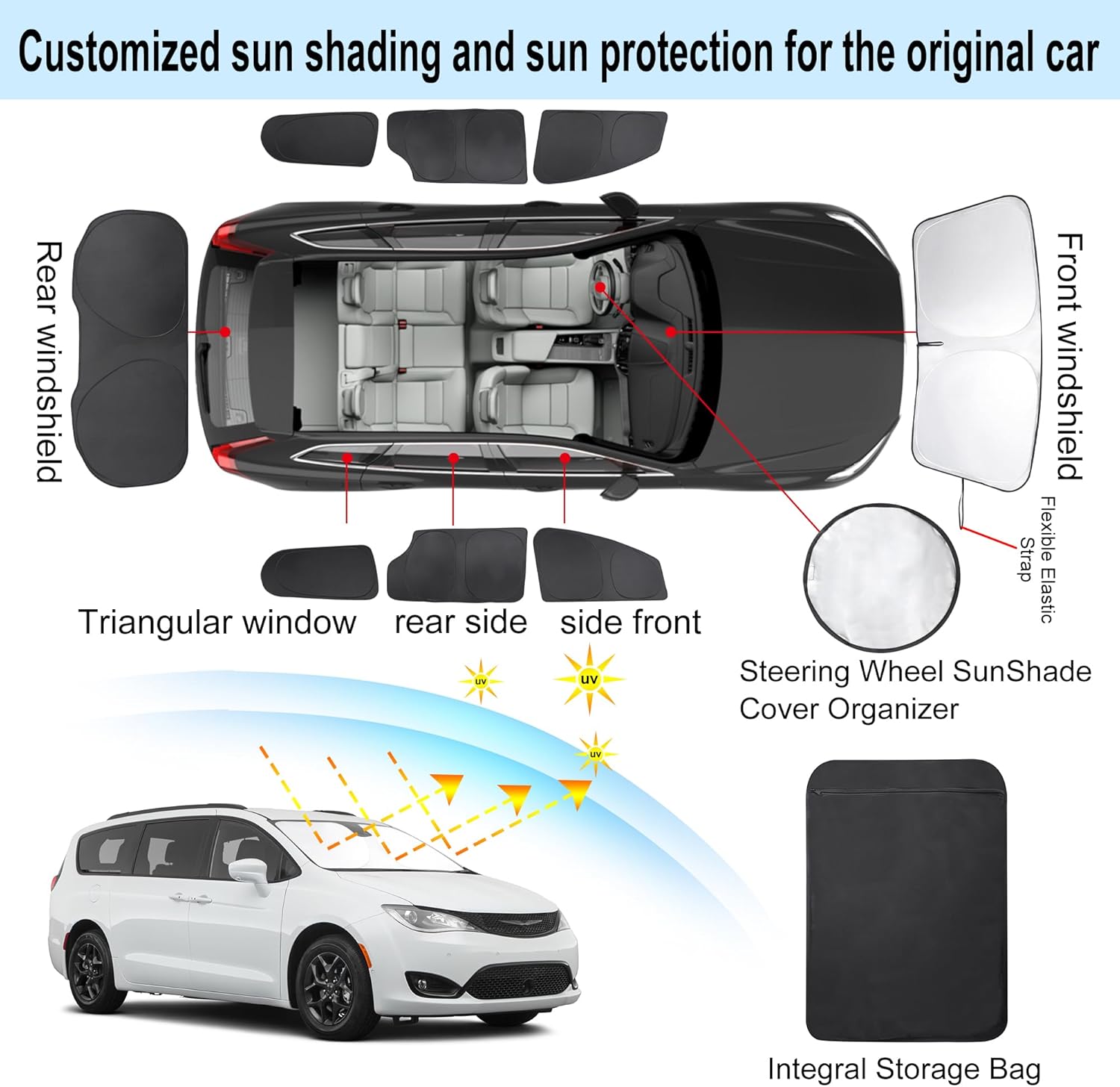 TINGLU Window Shades for Chrysler Pacifica Minivan 2017-2025 Accessories Full Windows Rear Triangular Windshield Sun Shade Sun UV Rays Privacy Protection 8PCS