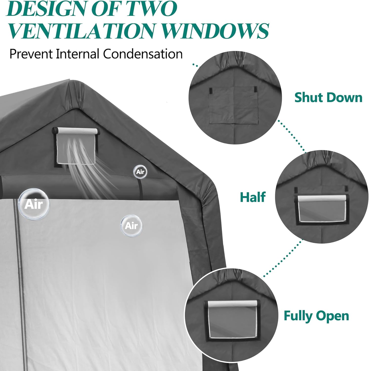 - 🖼️MULTIPLE USAGE: The Heavy Duty Storage Tent can be used as Bike sheds, Tool sheds, Motorcycle Shelter or Storage room for your backyard, garden, pool. It can keep your space environment neat and tidy