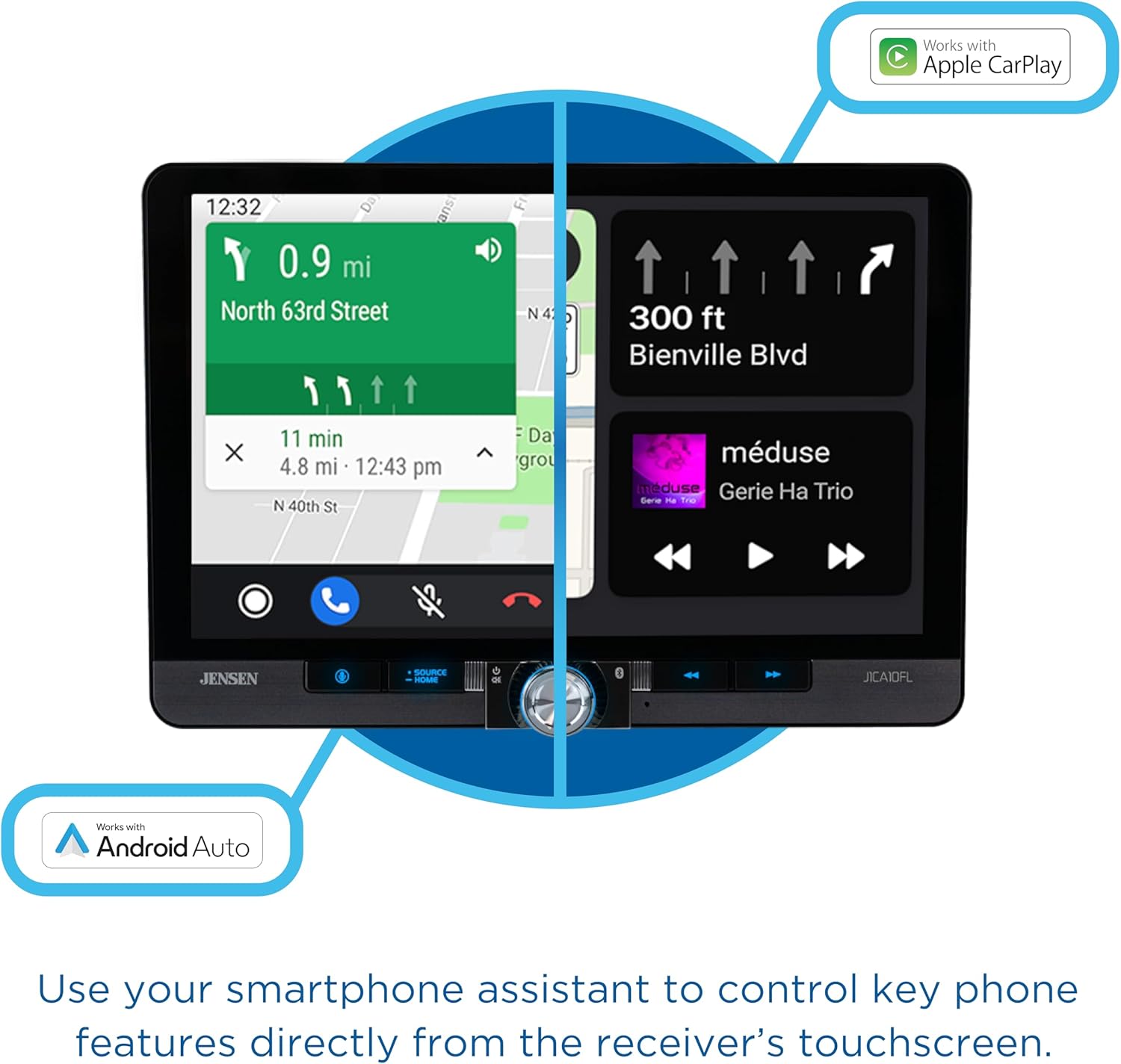 - APPLE CARPLAY โ CarPlay is the smarter and safer in-vehicle interface to operate your iPhone, and the experience is taken to another level when featured in the J1CA8FL multimedia receiver. Simply talk to Siri or touch the receiverโs display and get directions from Apple Maps, make phone calls, listen to voicemail, send and receive texts, and listen to music all in a way that allows you to stay focused on the road.