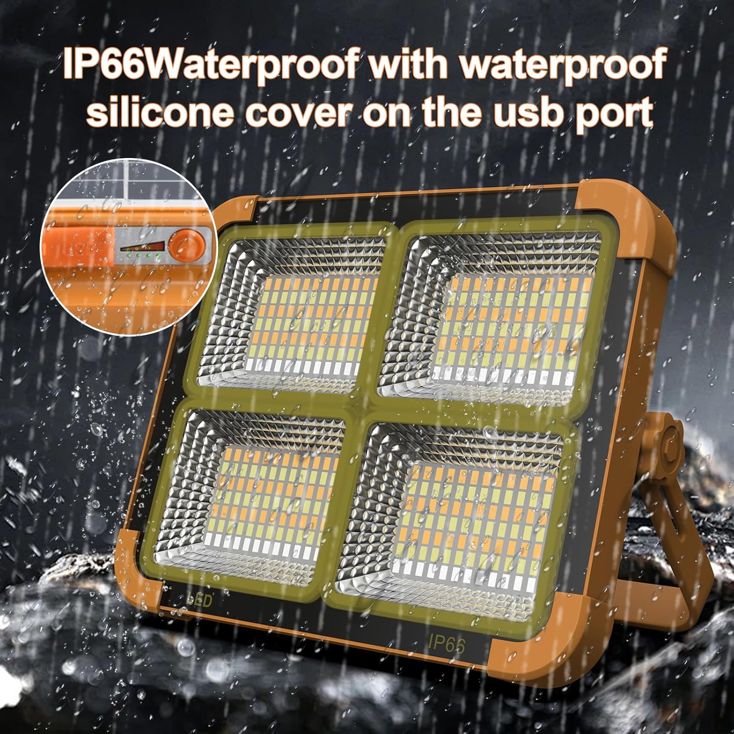 Portable LED Work Solar Light 100W 16500mAh 10000 LM with Stepless Brightness Job Site Battery Rechargeable LED Floor Light for Emergency Worklight for Hurricane (Orange(Remote))