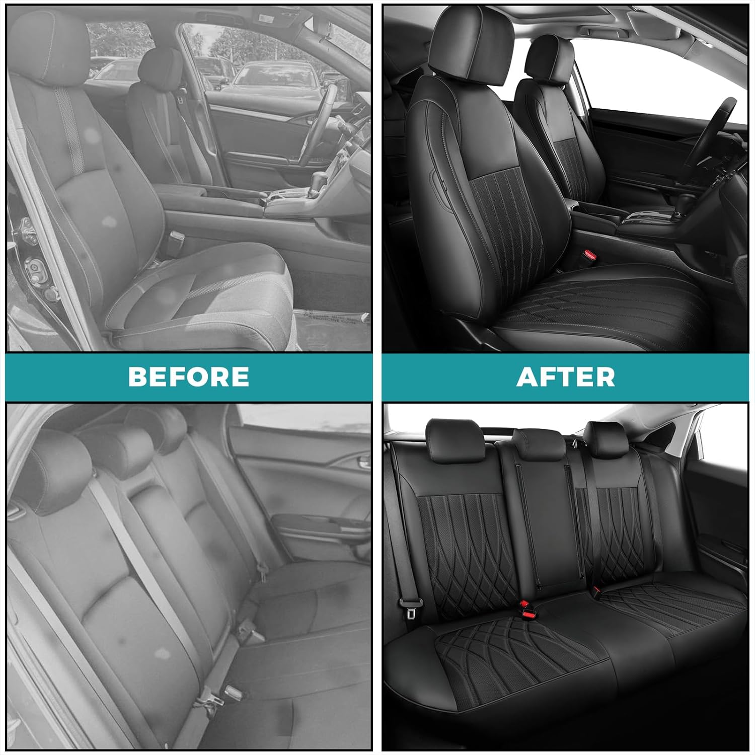 Seat Covers for Honda Civic Sedan EX-L, EX-T, EX, Touring, LX-P, Sport 2016 2017 2018 2019 2020 2021, Faux Leather Car Seats Cover Full Set(Rear Row 40/60 Split & Folding Backrest)-Black