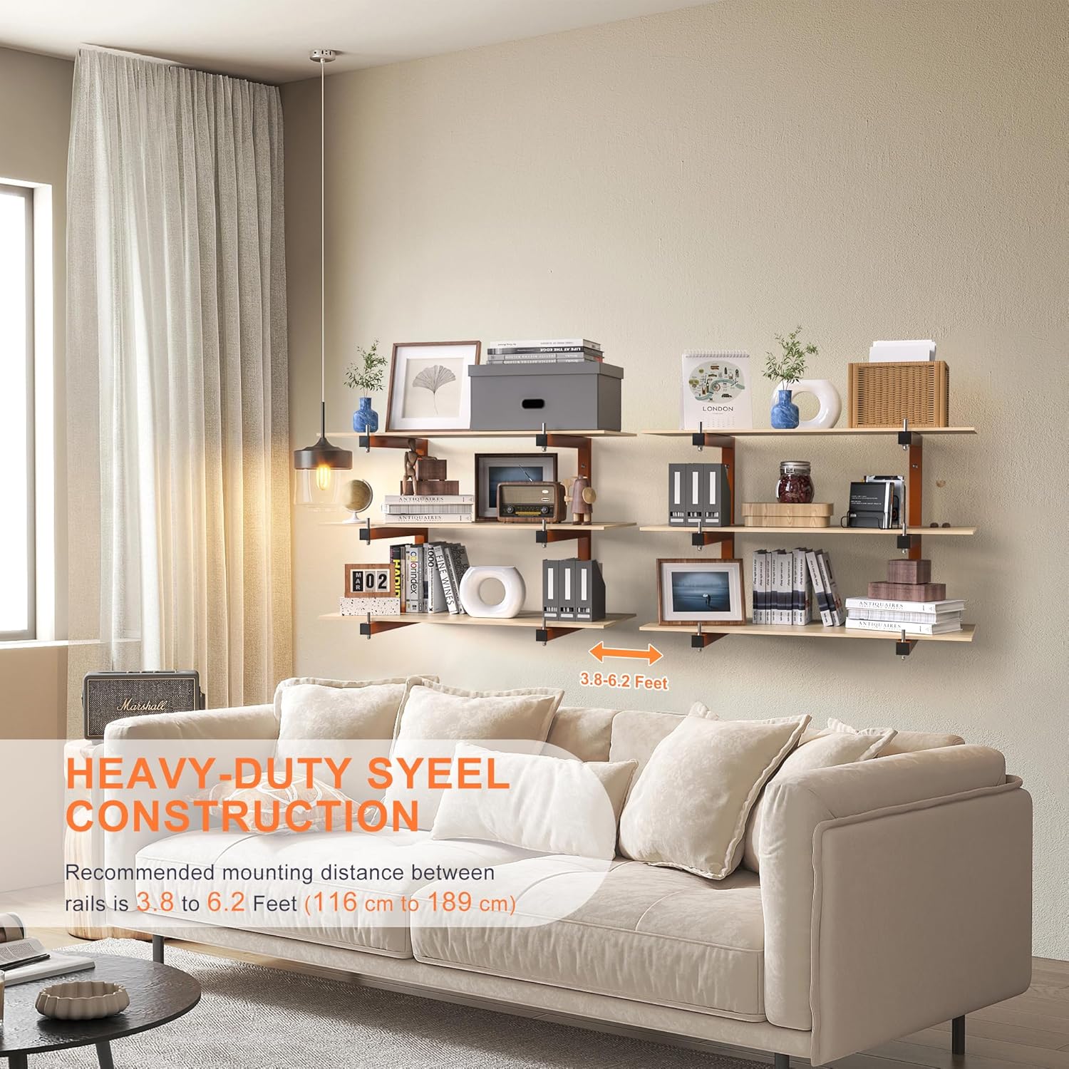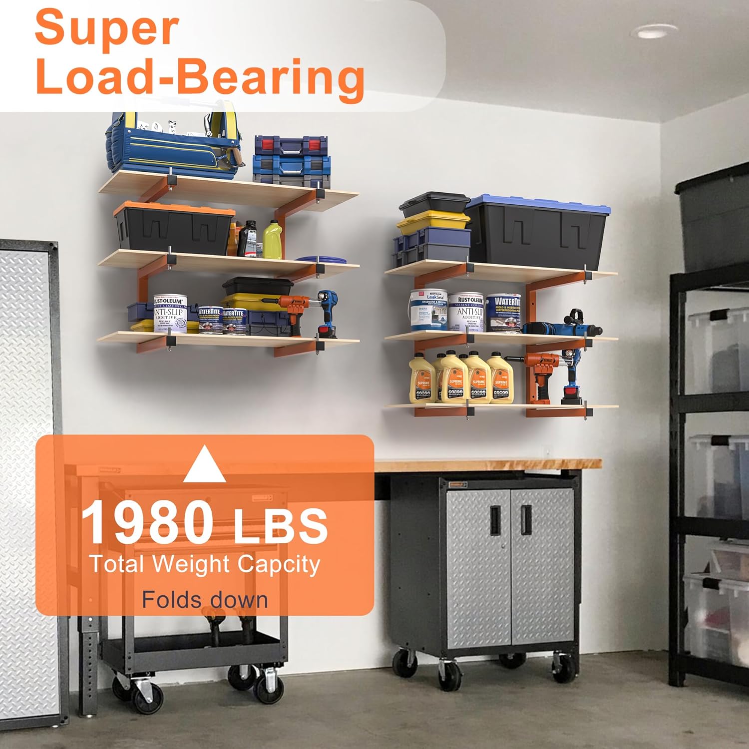 - 1980 LBS WEIGHT CAPACITY : Wall-mounted wooden storage rack adopts a more supportive triangular one-piece design. each shelf can hold up to 220 lbs, the 4-pack wood rack organizer can hold up to 1320 lbs, and the 6-pack wood storage system can hold up to 1980 lbs, so you can store all your heavy and bulky items, these metal organizer units are roomy enough for your everyday needs.