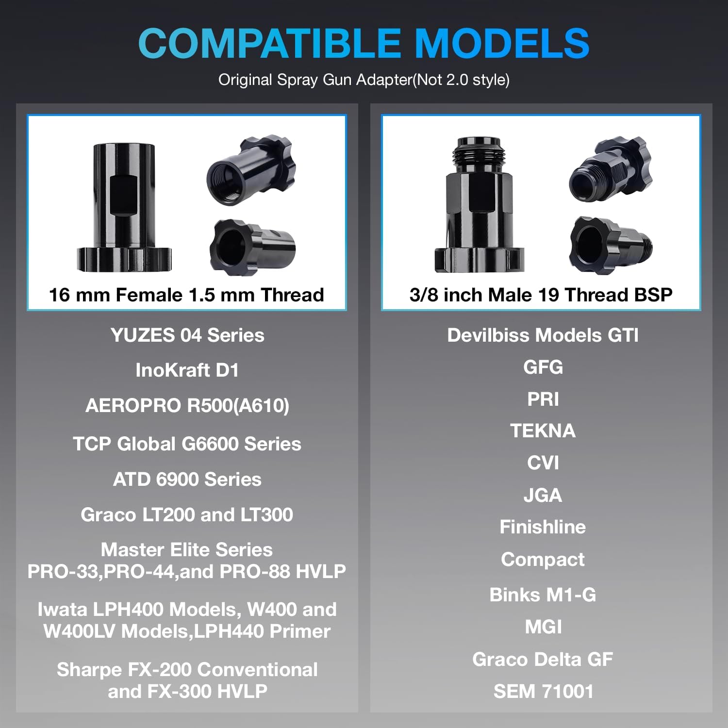 - Compatible with most spray guns: Decwls disposable paint gun cups compatible with the original spray gun adapter (not 2.0 type) and can be twist-locked on. At the same time, kit include 2 types of original spray gun adapters - 16mm*1.5mm Female adapter, 3/8 inch Male adapter - for added convenience. (NOTE - Please verify your adapter and spray gun model).