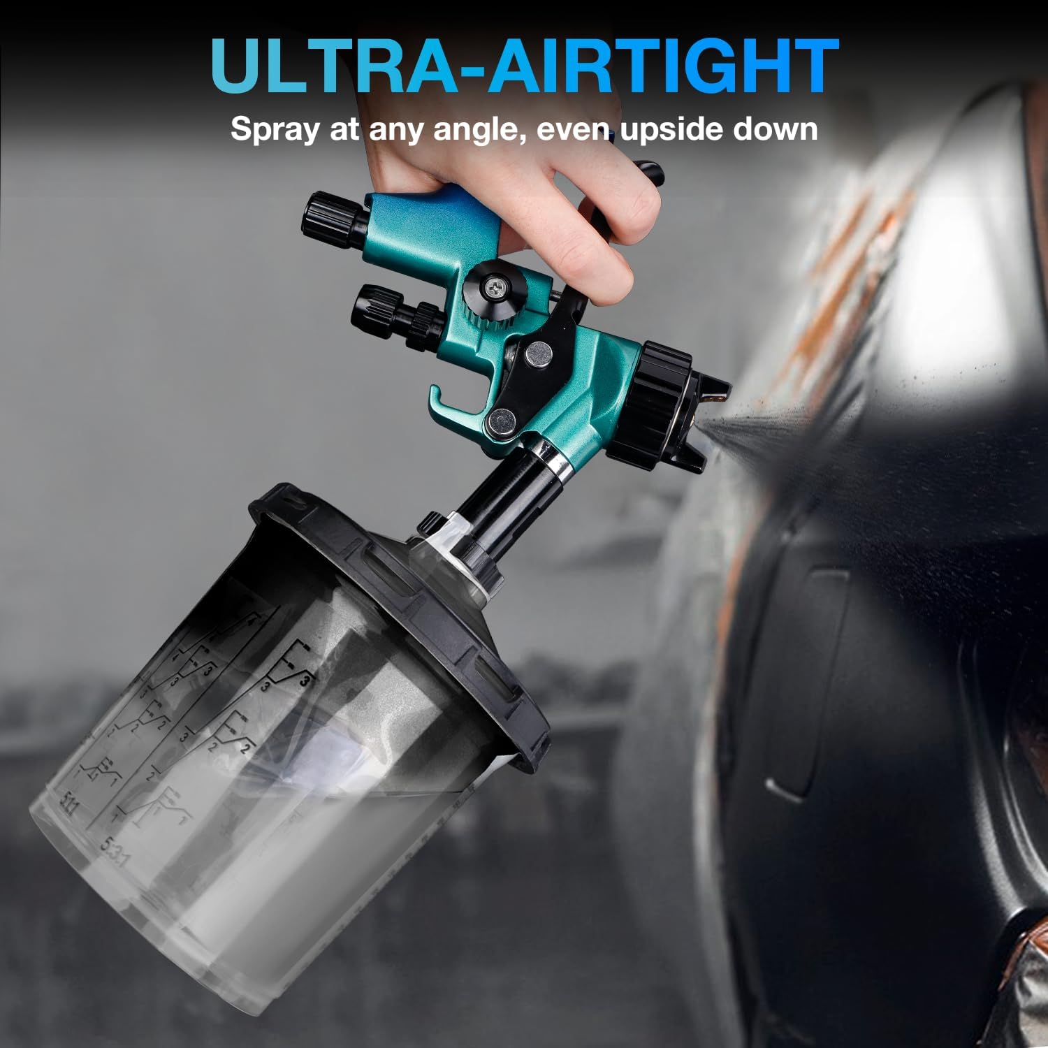 - 360° Spray At Any Angle: The tightly sealed paint gun cup system allows you to spray at any angle, even upside down, ensuring every drop is used without waste. Precisely molded, the paint cup liner and lid fit perfectly together.