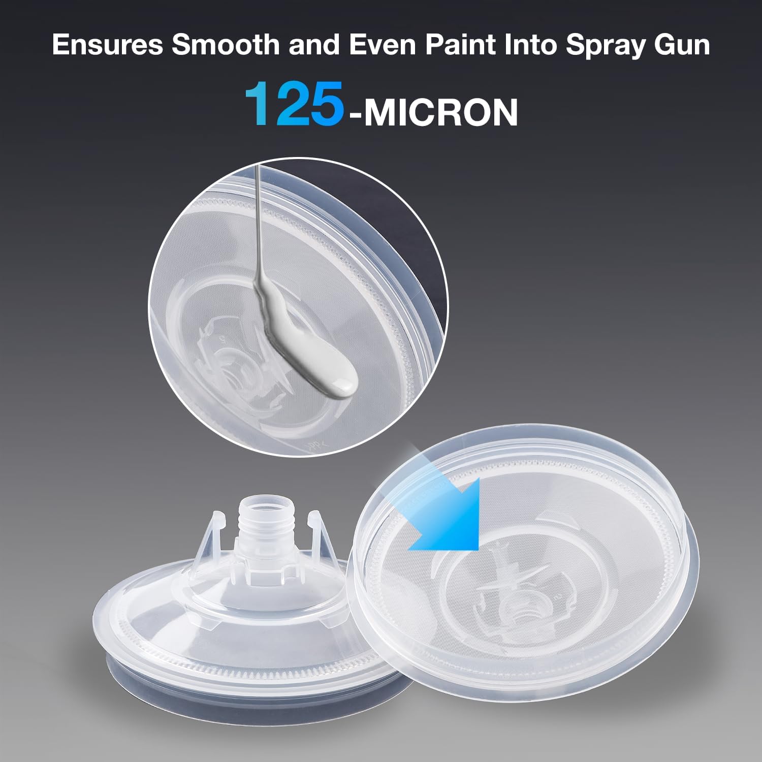 - Fine Filtration For Smooth Finishes: The paint cups lids features built-in 125-micron filters for a smoother, more even coat compared to 190-micron filters. the paint measuring cups is compatible with all types of paints, primers, epoxies, and commercial coatings. Ideal for painting Cars, Boats, Aerospace, Furniture, Home, Arts and Crafts.