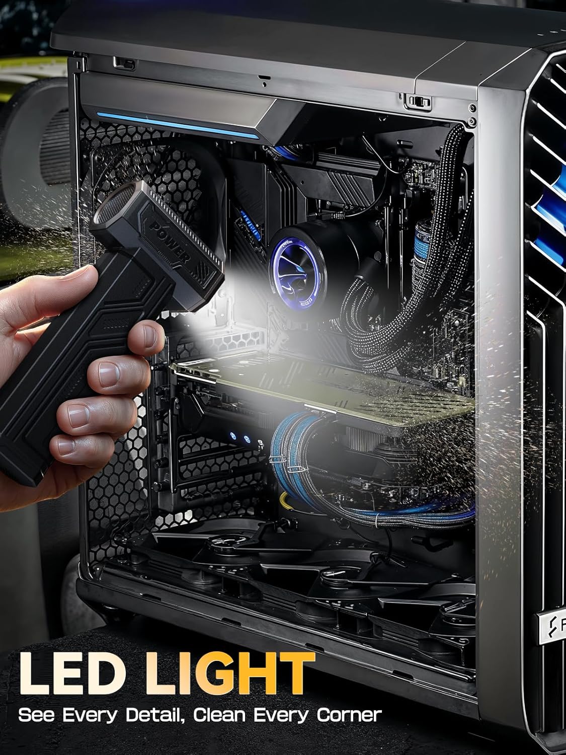 - Eco-Friendly & Cost-Efficient: The compressed air duster is a reusable and sustainable alternative to single-use compressed air cans, offering long-term savings and reducing environmental impact.