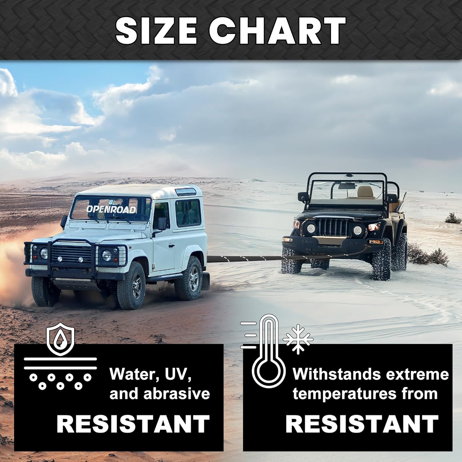 - 【Extreme Anti-Corrosion Ability】The entire surface of the tow rope is covered with a polyurethane wear-resistant coating, which has excellent resistance to UV rays and rain corrosion. The Kinetic Recovery Rope's joints are equipped with anti-wear protective covers to further enhance durability and last longer. No matter what kind of extreme weather you face, it is your rescue tool that is always on standby.
