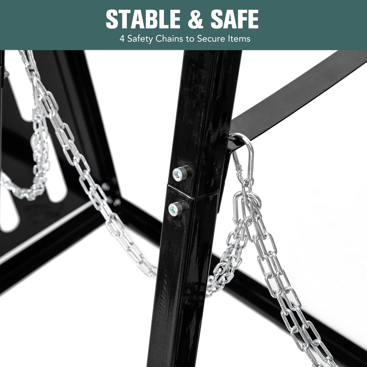 - STABLE & SAFE: The lumber storage rack includes 4 safety chains to secure items and stabilize components in place.It will not deform or bend easily, and its safe load-bearing capacity is beyond doubt.The bars are also strong enough to hang additional items, keeping your space organized and clutter-free.