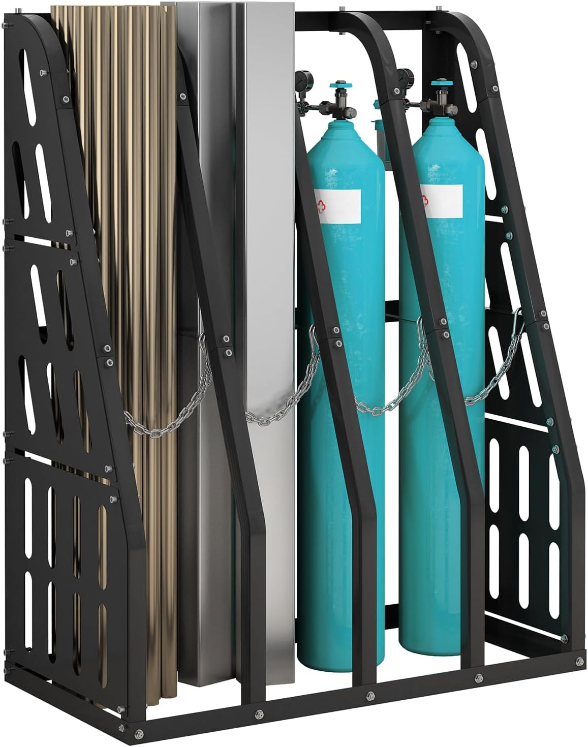 - WIDE APPLICATIONS: Our vertical bar rack is designed to accommodate various materials such as wood, gas cylinders and more. The storage racks are modern, minimalist design not only offers efficient storage but also enhances your workspace with a clean, organized look, making work more enjoyable and efficient.