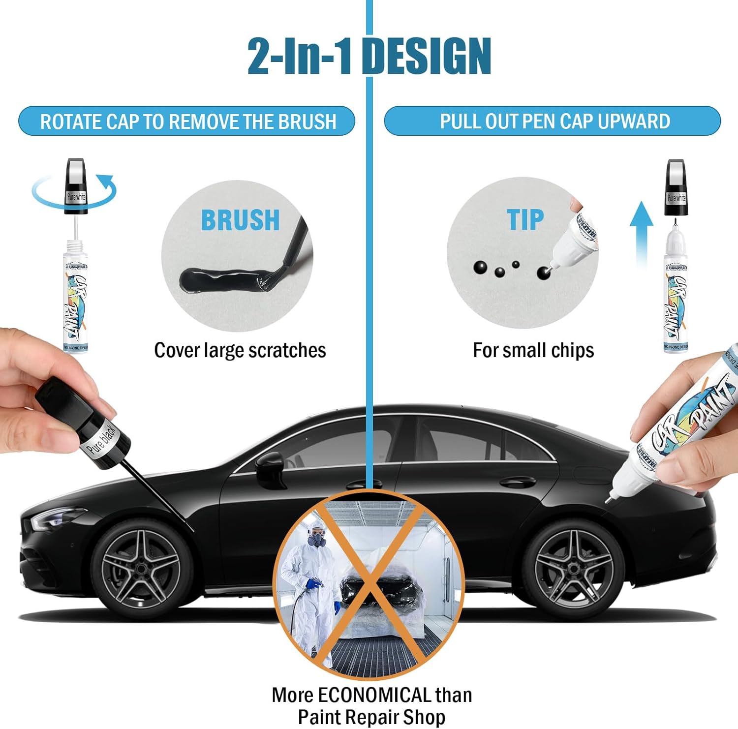 - Multiple Solutions: Our automotive paint pen has a multifunctional 2-in-1 design and upgraded brush, unlike traditional hard-to-control spray paint, our car scratch repair pen has a metal tip to fix small paint peel or chips. The brush to cover larger scratches, it can realize a precise and easy repair. Auto paint can also be used on a variety of other surfaces such as rims,bicycles,motorcycles,furniture,etc.Black car paint can fix more situations than you can imagine