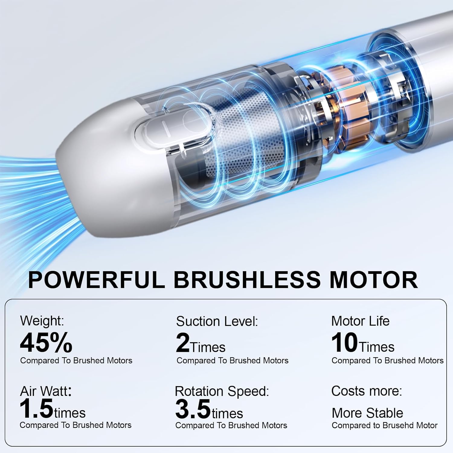 Cordless Handheld Car Vacuum, 16000PA 2-in-1 Blow & Suction, Brushless Motor, Type-C, Low Noise, for Home, Office