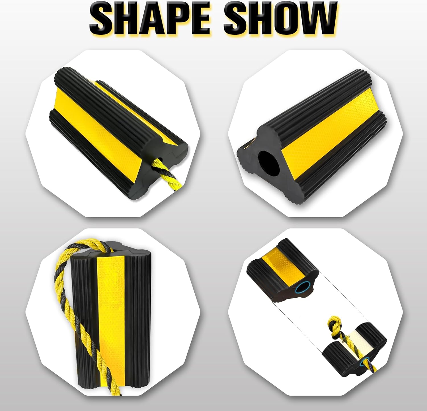 Heavy-Duty Wheel Chocks with Extra-Long Safety Rope (86") - 2-Pack Reflective Rubber Blocks for Trailers, Trucks, Campers & Garage Use (4pair/8pack with Rope)