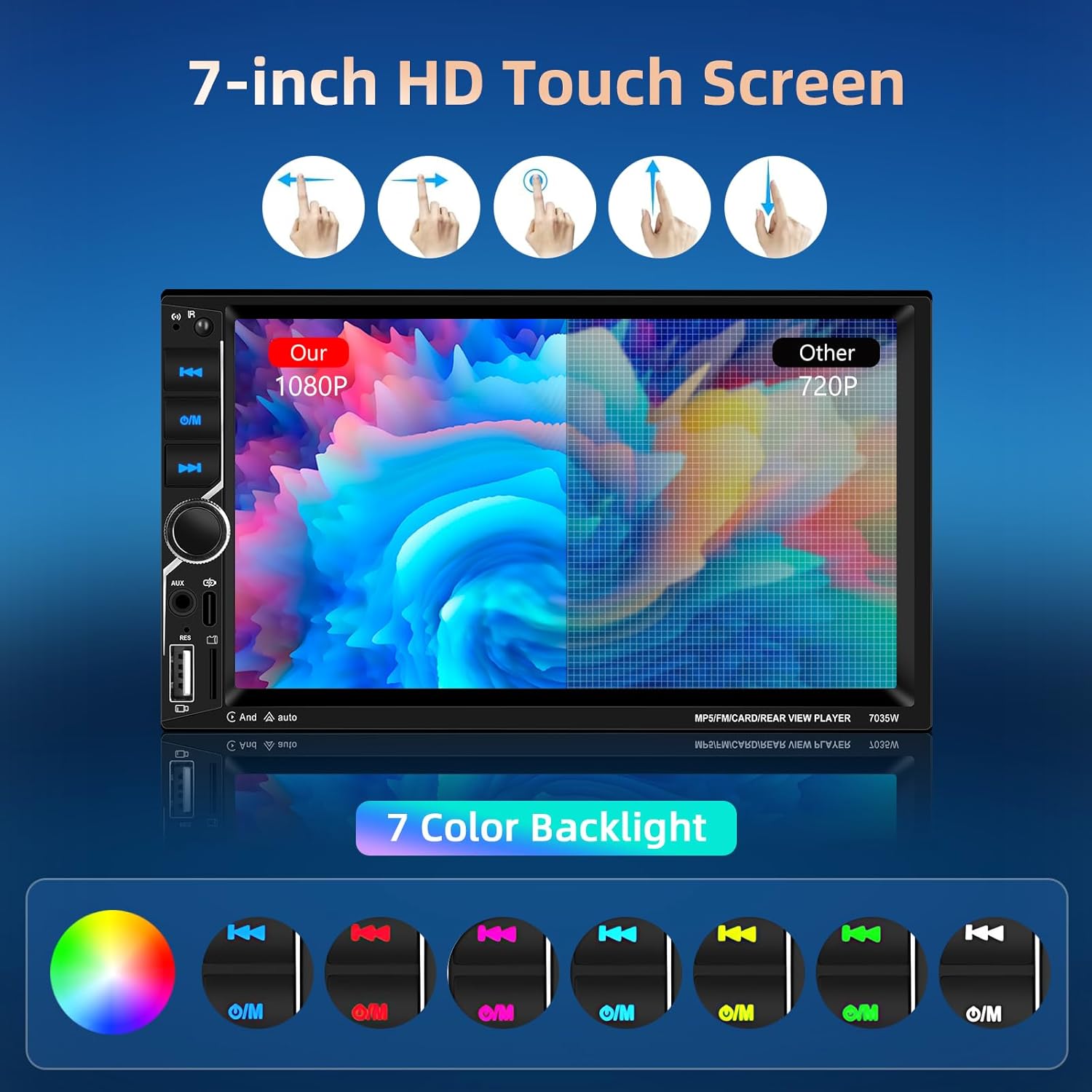 - [7 Inch Double Din Car Stereo]: 7-inch capacitive touchscreen with sensitive response, rich colors and wide viewing angles. Specific dimensions: 178*100mm.Please read the product size carefully and measure the size of your dashboard before purchasing. (Some cars may require additional dash kits to complete installation).