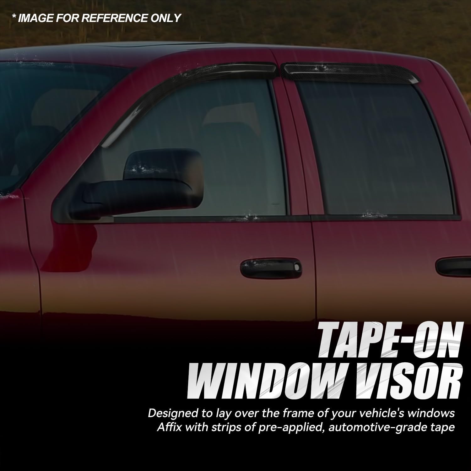 Auto Dynasty 4Pcs Carbon Fiber Pattern Window Visors Compatible with 2002-2009 Dodge Ram 1500 2500 3500 Crew Cab, Tape-On Front & Rear Window Deflectors Rain Guards Sun Side Vent Shade, Glossy Black
