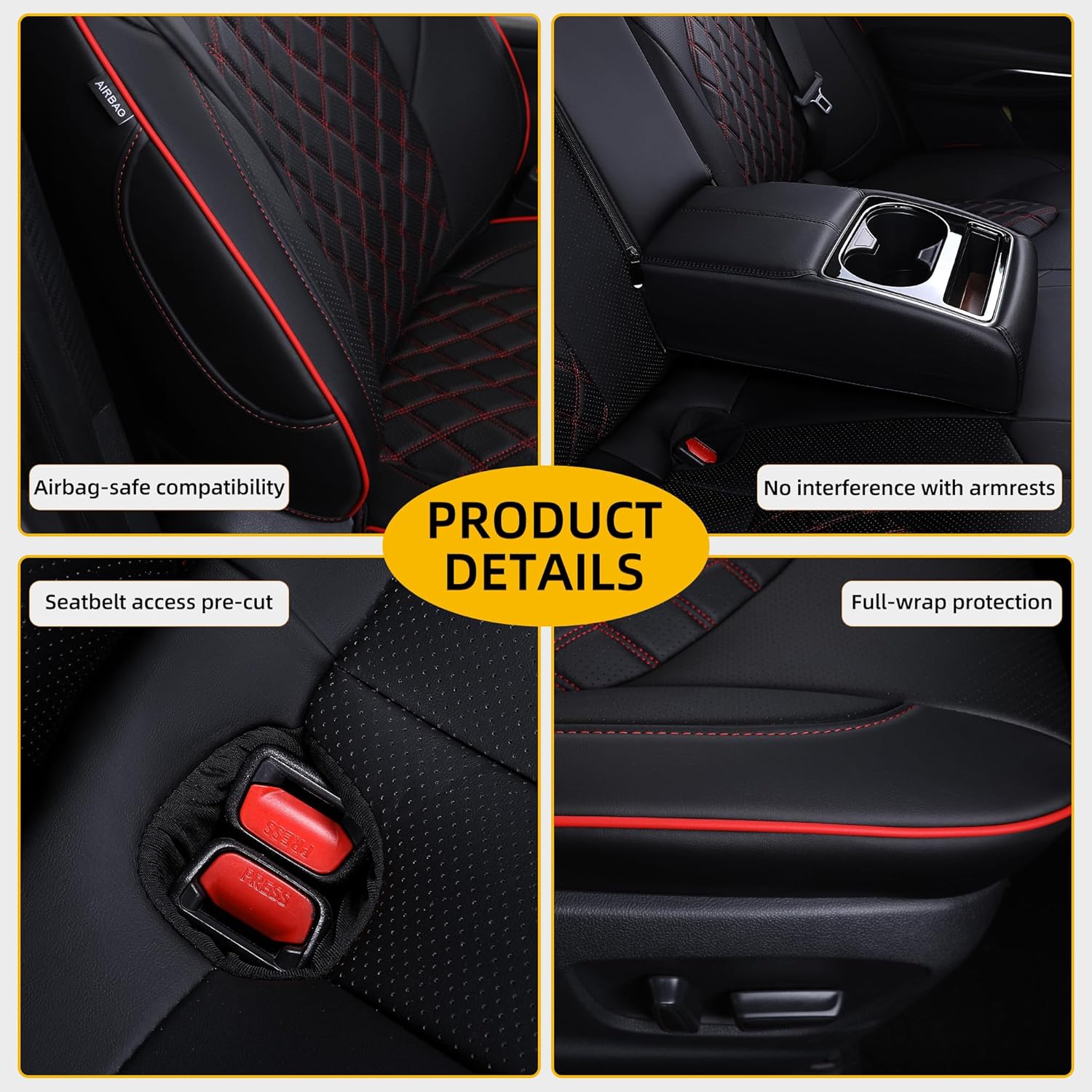 - 【Full Compatibility with Camry】This Camry seat covers retains all functions of the original car seat. Does not affect seat adjustment and heating function. And it is fully compatible with airbags and child safety seats.
