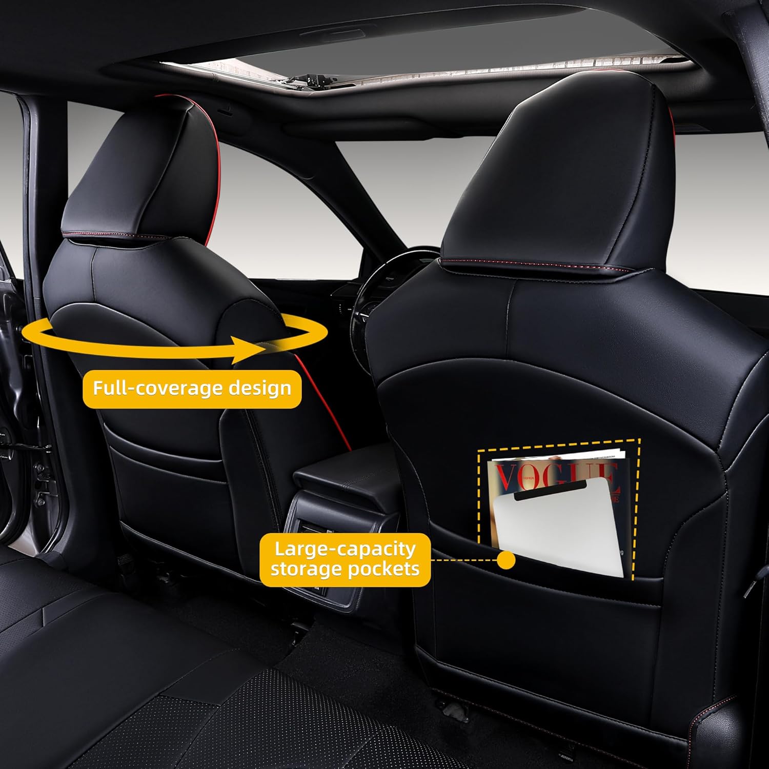 Custom Fit Camry Seat Covers for Toyota Camry Hybrid LE, Hybrid SE 2018-2024 Full Coverage Waterproof Breathable Leather Car Seat Covers Full Set (Black with Red Trim)