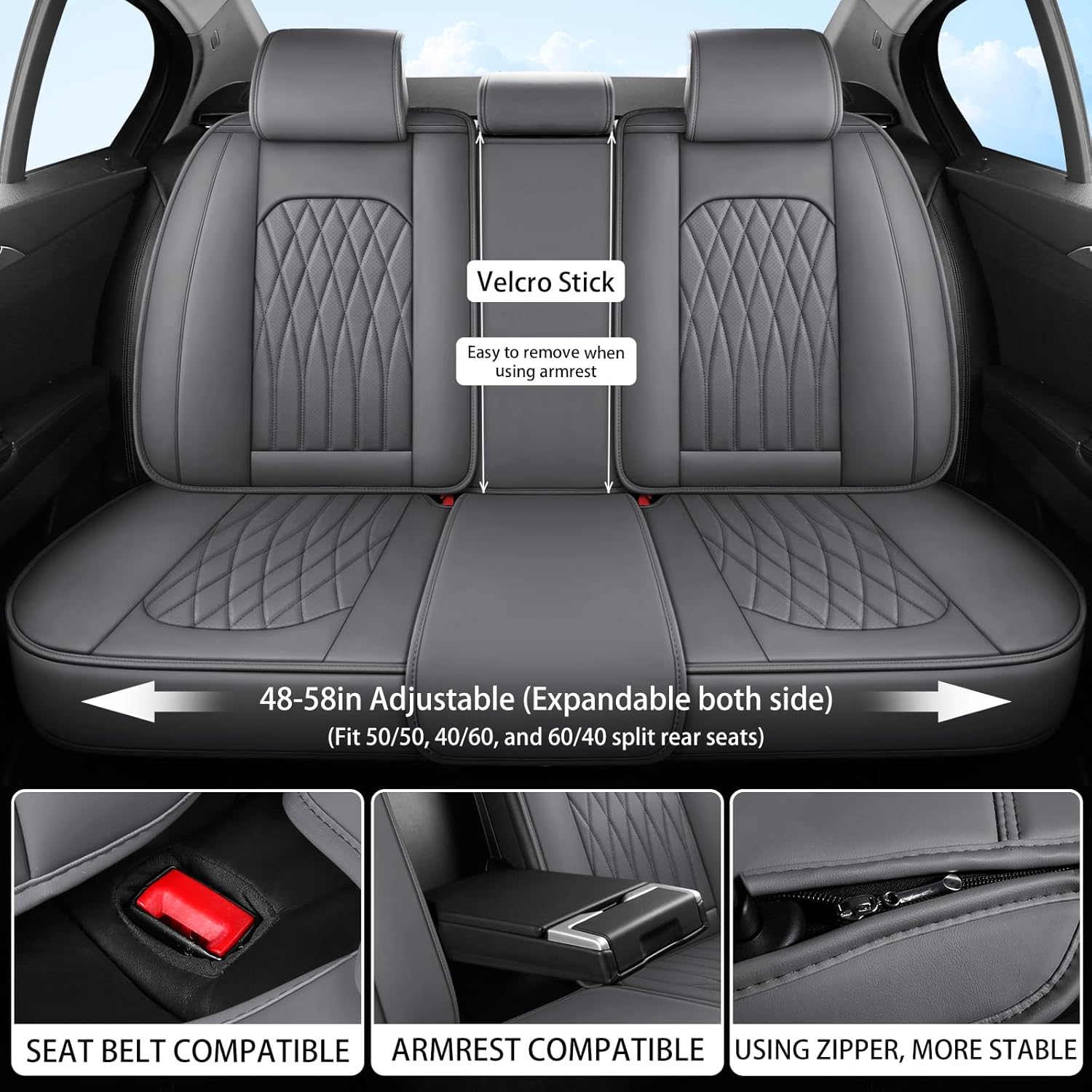 - Special Feature : 0.28in thickened cushion, soft and comfortable;, Does not affect the use of heating and cooling functions;, Non-slip bottom design, stay in place when in and out;, Updated zipper design at the headrest, more stable;, Waterproof faux leather seat covers; 0.28in thickened cushion, soft and comfortable;, Does not affect the use of heating and cooling functions;, Non-slip bottom design, stay in place when in and out;, Updated zipper design at the headrest, more stable;, Waterproof… See more