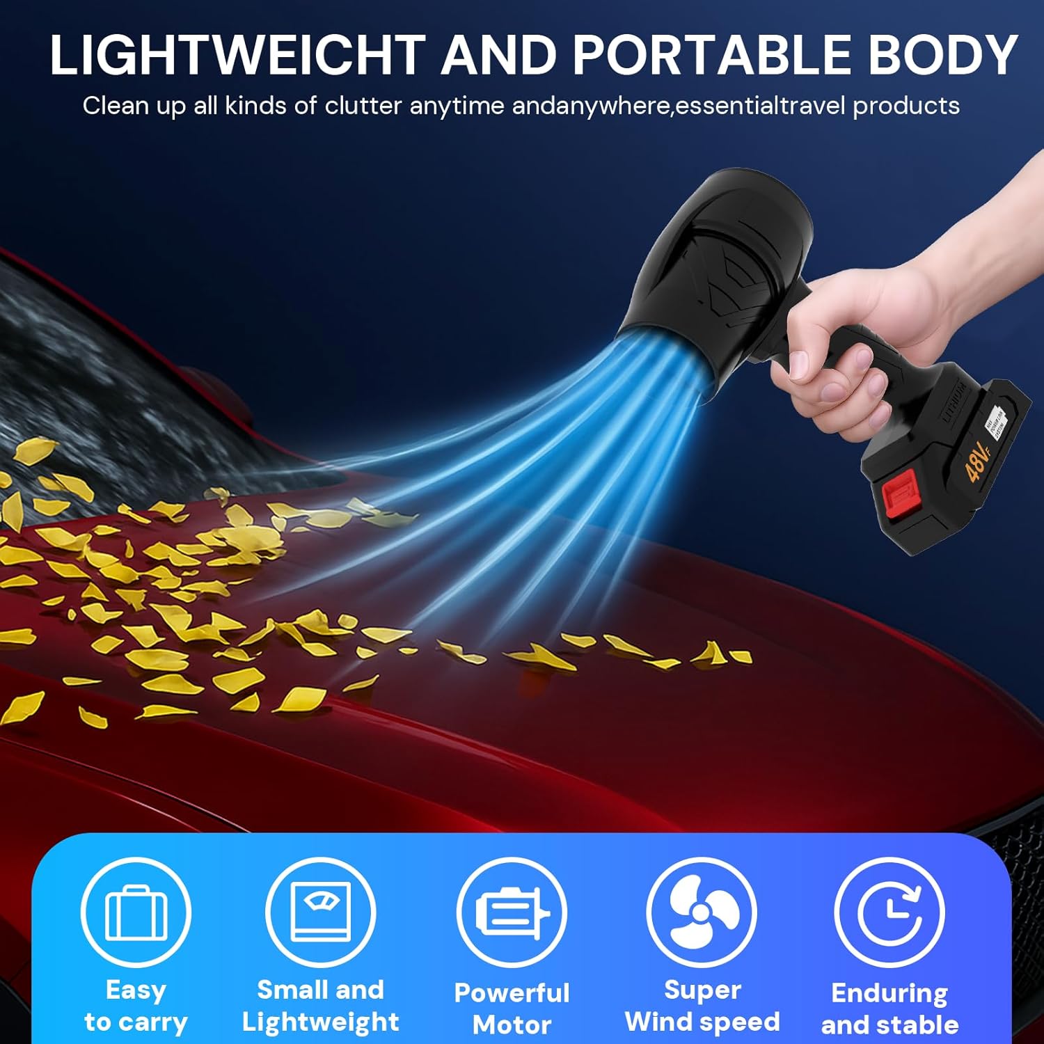 - 【Lightweight, User-Friendly Design】 Designed with portability and comfort in mind, this compact blower turbo dry car dryer features an intuitive control system and ergonomic grip. Simple setup and battery installation make it perfect for all users, regardless of experience.