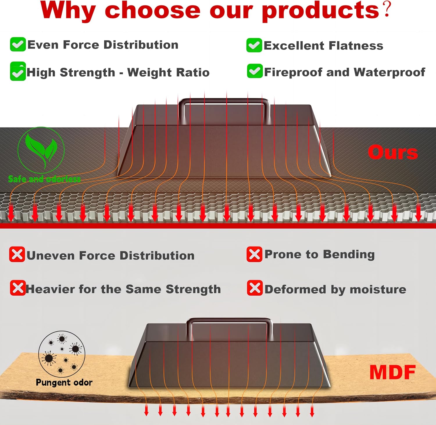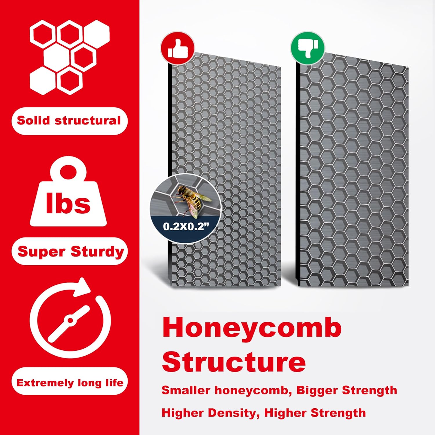 - [Stable & Safe Heavy Duty Storage Shelves – Anti-Slip, Anti-Tip Design] Safety is a top priority in high-traffic garages, warehouses, or basements. The aluminum honeycomb panel's textured surface boosts friction, keeping tools and bins from sliding—even when jostled. Its hexagonal structure distributes weight evenly: a gentle compression sound when loading signals balanced weight distribution, preventing sagging. Sturdy enough to stay steady during daily use, it resists tipping and includes anti-dumping kits for extra stability. Your workspace and items stay secure