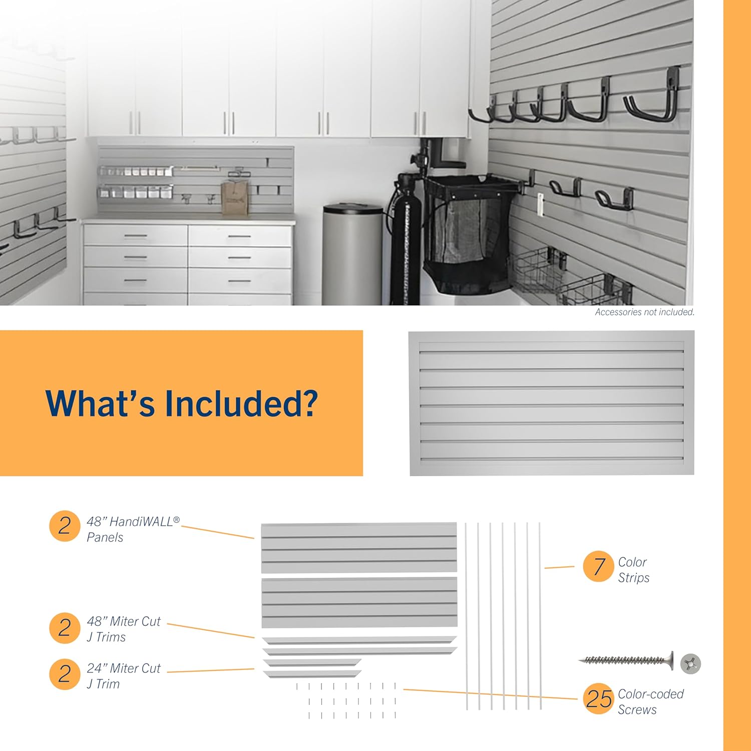 HANDIWALL (GRAY) PVC Slatwall Garage Wall Organizer, 4x2ft Heavy Duty Framed Slatwall Panel Storage Kit, Wall Mount Organizing Storage System For Slatwall Accessories