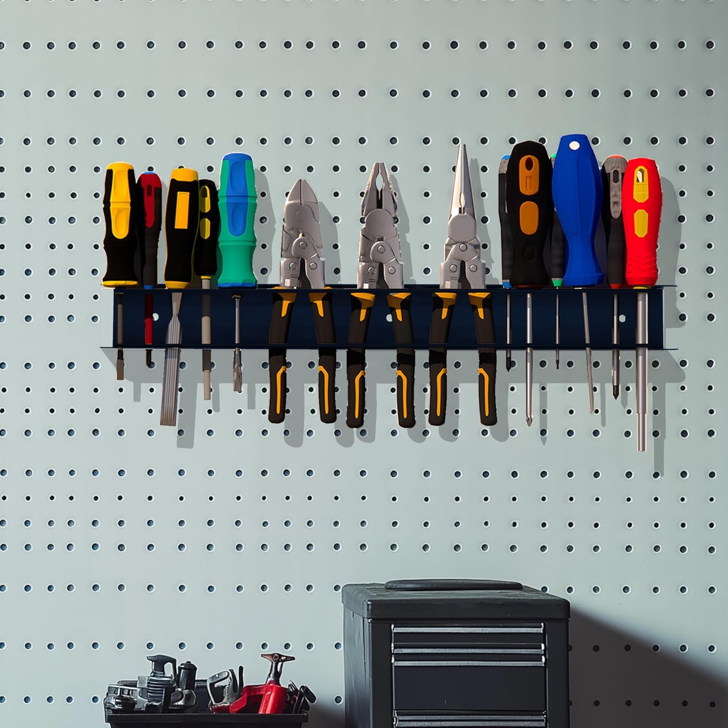 - SPACE SAVING:Wall Mounted Tool Drawer Organizer design can utilize unused space to make room for a workbench or work area! (Package includes tool storage rack only, tools in the picture are not included)