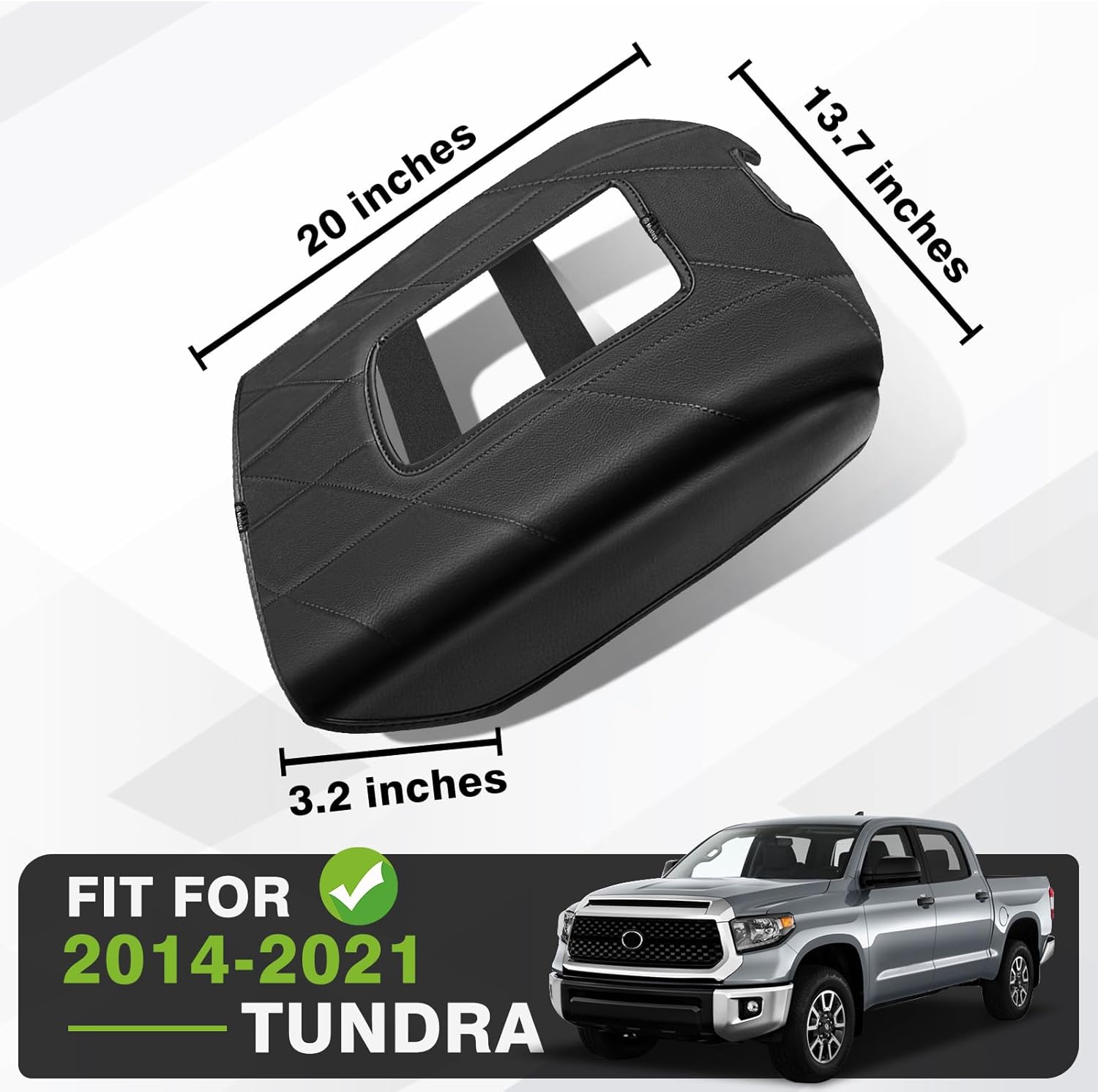 Muslogy Center Console Armrest Cover Compatible with Toyota Tundra 2014-2021 Comfort Armrest Pad Anti-Scratch Arm Rest Cushion Vegan Leather Protector 1-Inch Extra Thick(Bucket Seat ONLY)