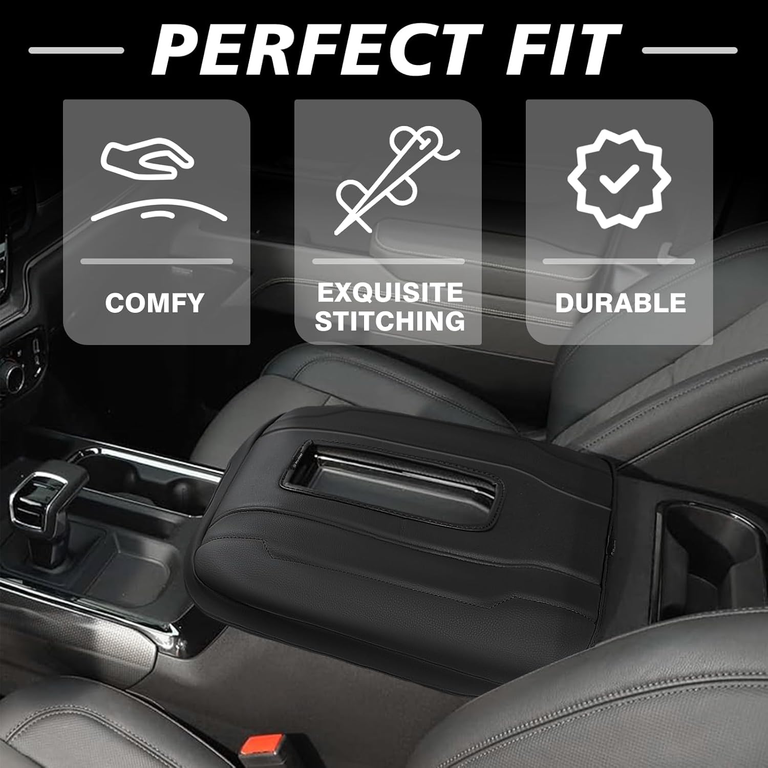 Muslogy Center Console Armrest Cover Compatible with Chevy Silverado & GMC Sierra 1500 2500 3500 2022-2025 Comfort Armrest Pad Arm Rest Cushion Vegan Leather Protector Regular Thick(Bucket Seat ONLY)