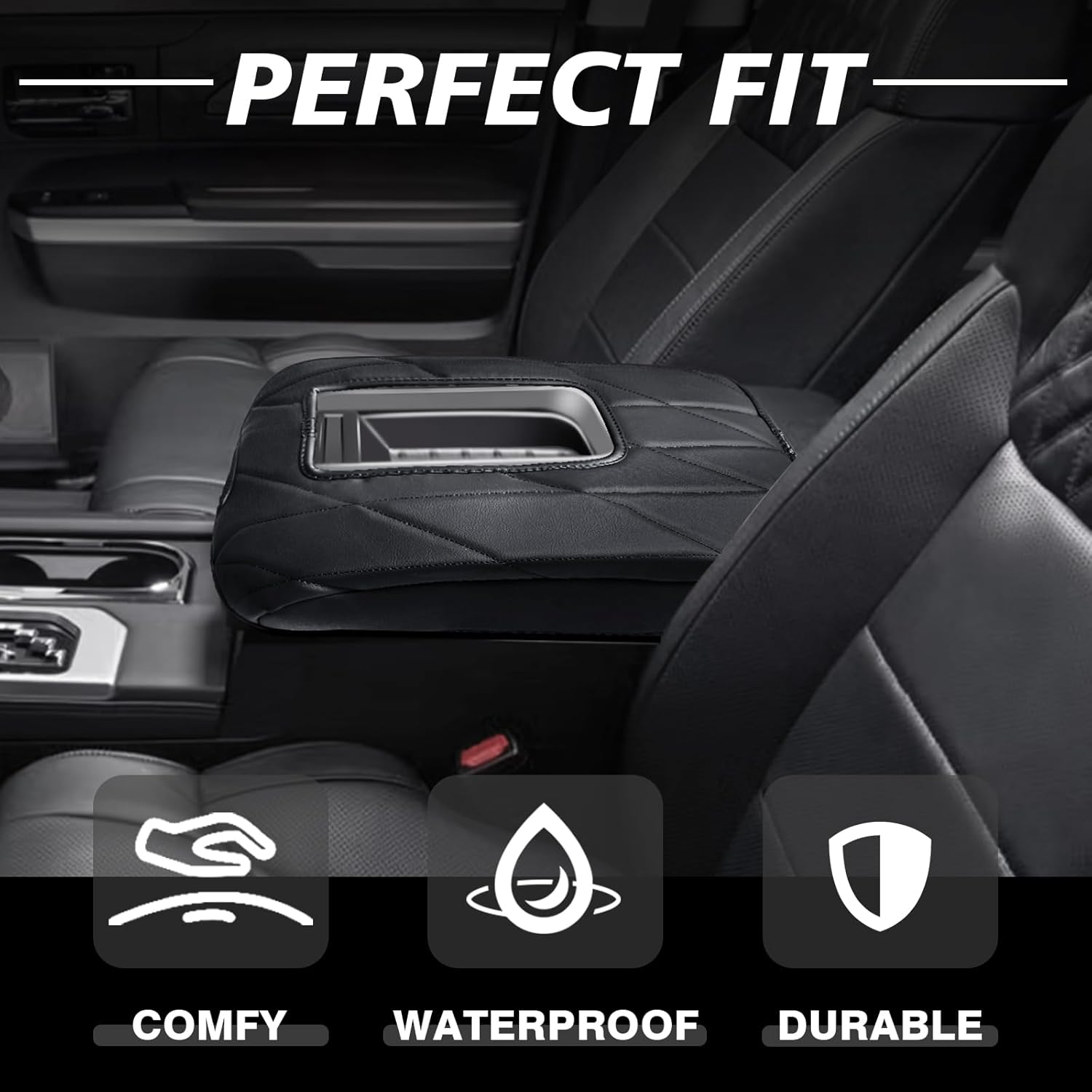 Muslogy Center Console Armrest Cover Compatible with Toyota Tundra 2014-2021 Comfort Armrest Pad Arm Rest Cushion Vegan Leather Protector Regular Thick(Bucket Seat ONLY)