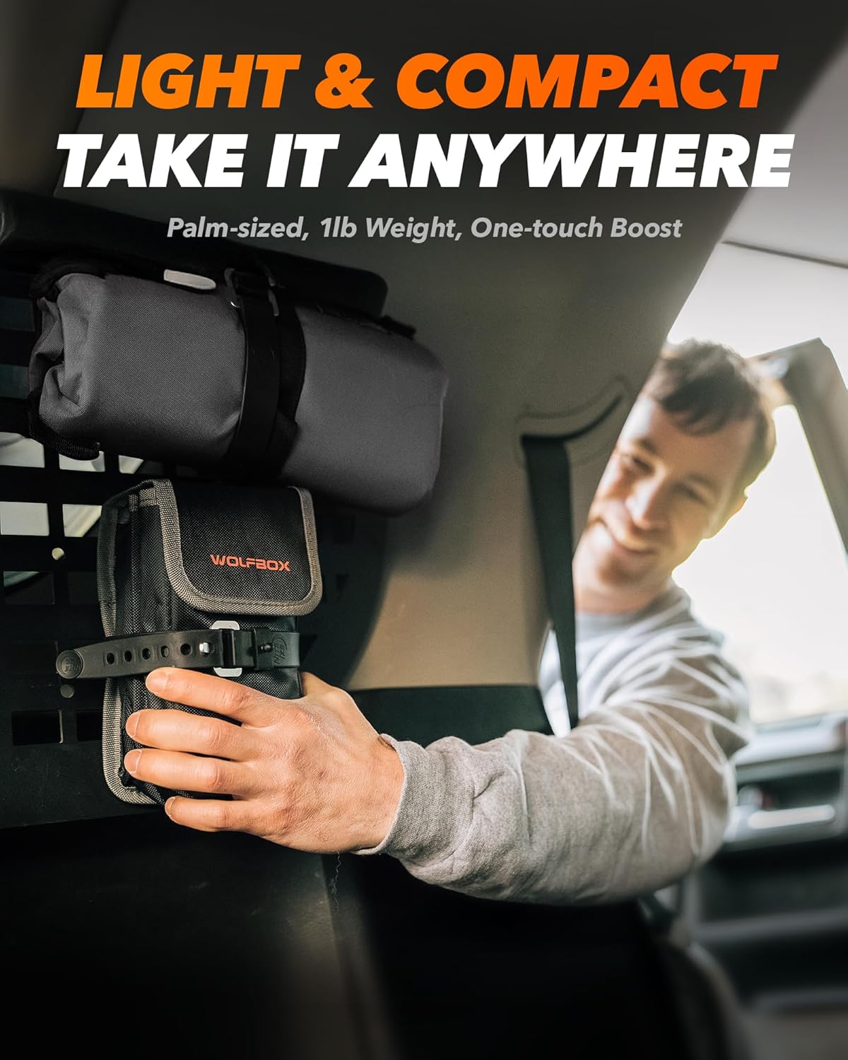 - Palm-sized and Weighing Just 1lb - this battery jumper starter portable features a compact and lightweight design, complete with a convenient canvas bag. It minimizes your load, making travel and camping effortless.