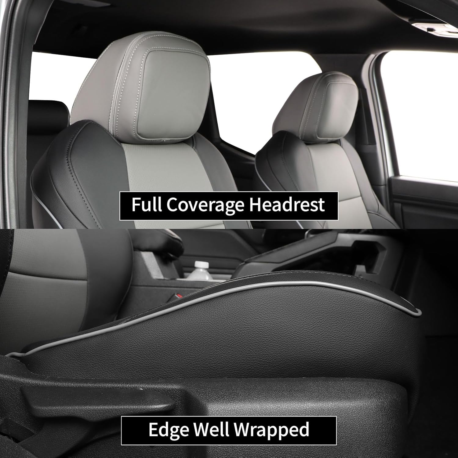 EKR Tacoma Car Seat Covers Custom for Select Toyota Tacoma (Only for Hybrid) 2024 2025 Double cab TRD Sport,TRD Off-Road,Limited,Trailhunter -Full Set,Leather(Black/Gray)