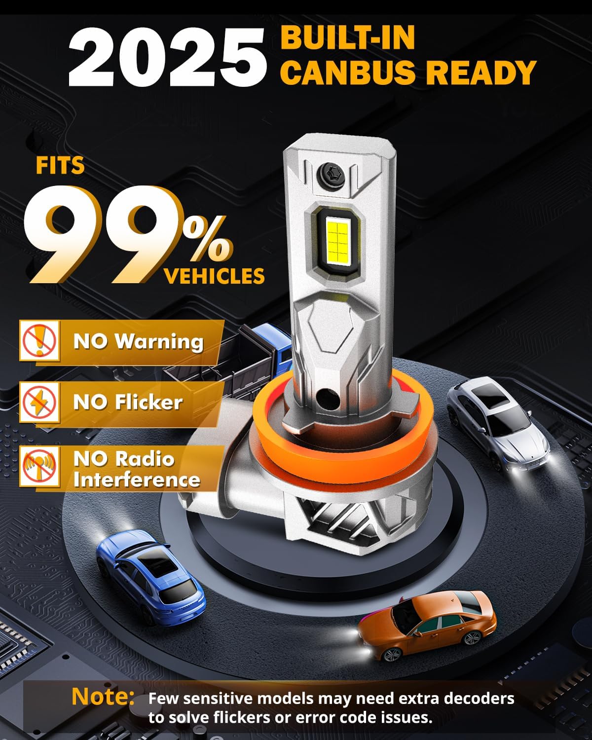 - 99% Compatibility: These 9005 H11 fog lights are built in latest decoding chips and intelligent IC driver, highly compatible with 99% models. No error codes, no warning, no flickering. Note: Some sensitive models still need decoders.
