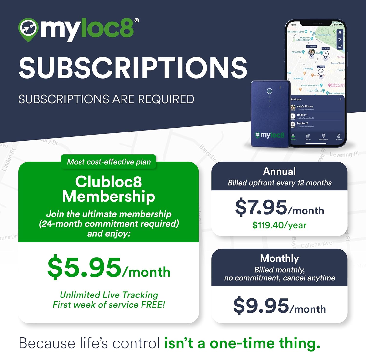 - Smart Alerts & Geofencing – Set custom zones and get notified if your tracking device for cars or people leave safe areas. Control from the free MyLoc8 app