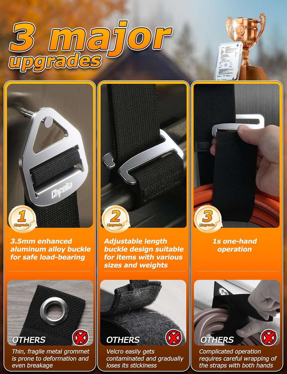 - ✅【ONE-HAND OPERATION, EFFORTLESS ORGANIZATION】Breaking away from the limitations of traditional velcro storage straps. Hanging up your cords has never been easier. With Chfeila's heavy duty cable straps, you can hang up your cords in one second, with just one hand. Its intuitive design and gravity-driven mechanism make cord storage a breeze. NO more struggling with complicated wrapping or tying techniques, leaving you more time to focus on the tasks at hand.