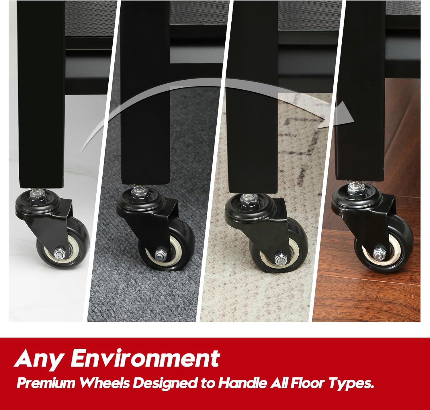 - Flexible and Slient Movement: With whisper-quiet operation and effortless pushing,this garage shelf with wheels revolutionizes your storage experience. The 360-degree swivel casters offer seamless turning of your equipment, making it a breeze to move around. Perfect for transporting and display pieces without a scratch or a sound. The built-in locking mechanism on each caster provides the ultimate convenience – move freely when you want, lock it firmly in place for stability and safety. This is the great garage shelving you've been searching for to bring order and ease to your space.