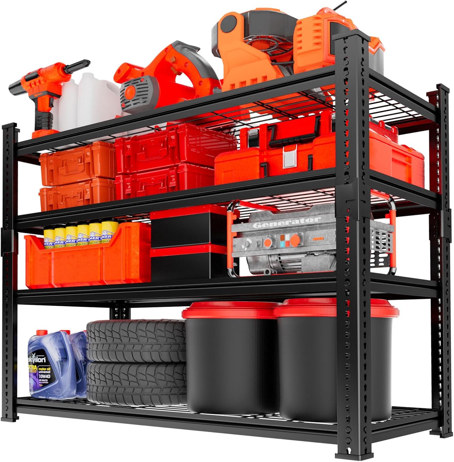 - 1920LBS Heavy Duty Capacity: MODCART's heavy-duty garage shelving is built with robust steel columns, supporting up to 480 lbs per shelf for a total of 1920 lbs. it offers reliable organization for your garage, kitchen, or laundry room