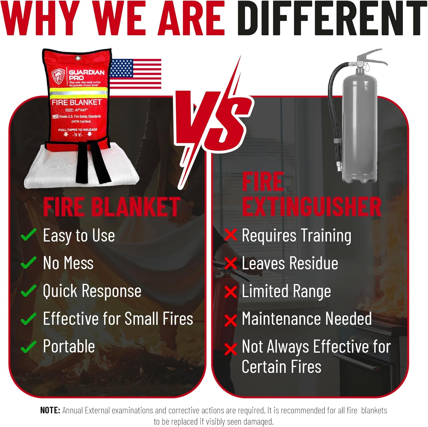 - The First ASTM-Certified Fire Emergency Blanket: Fully tested and certified to meet not just European safety standards but also USA fire protection standards, the Guardian Pro fire blanket for home and kitchen is the first fire suppression blanket with an ASTM certification. Deal with any emergency with confidence, knowing that your fireproof blanket actually meets the right standards.