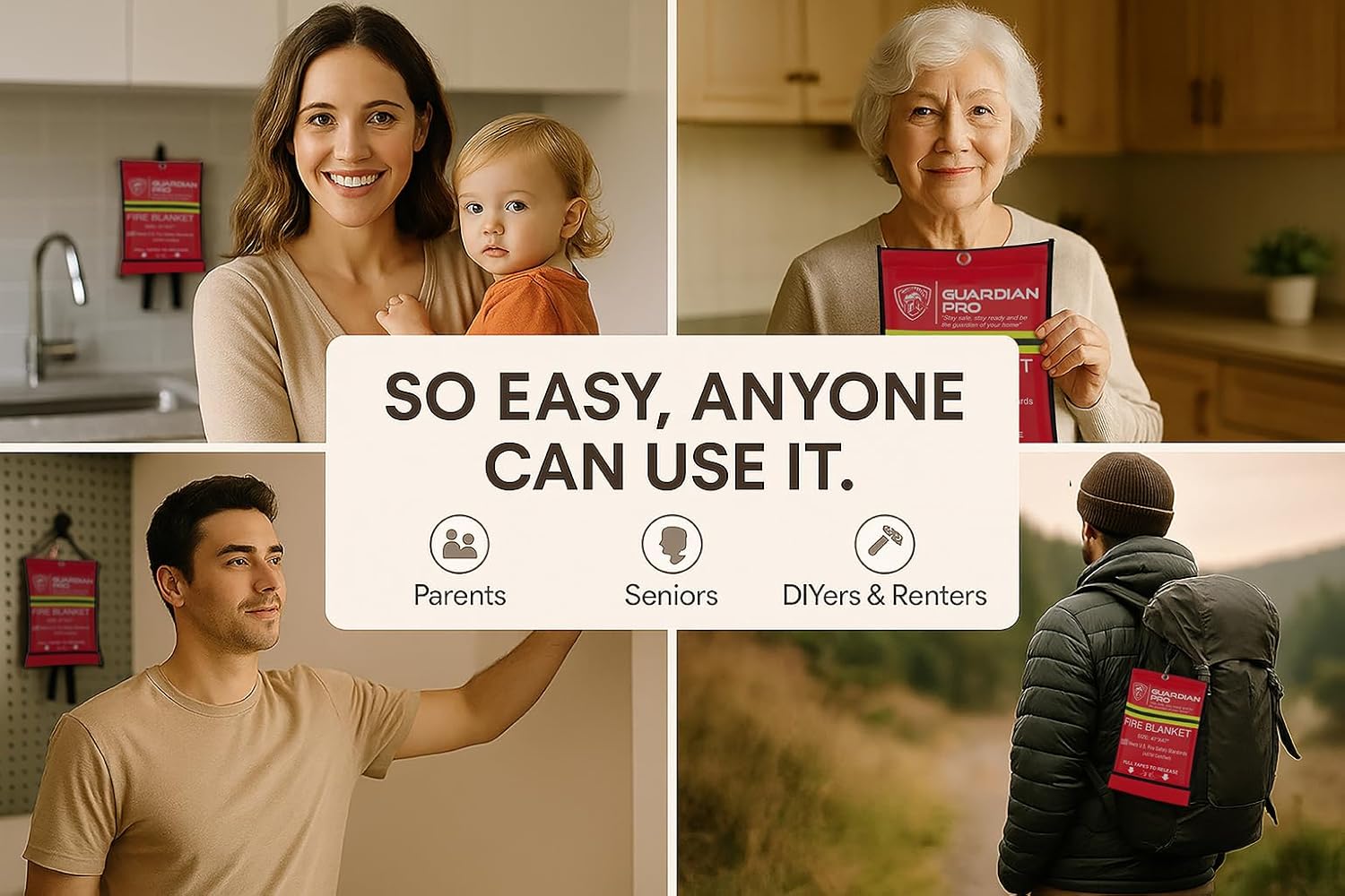 - A Must-Have For Every Home Or Adventure: Fires can happen everywhere. That's why it is important to keep the Guardian Pro fire proof blanket at your fingertips, whether you are camping, traveling in an RV, or simply grilling outdoors. Perfect for anyone who prioritizes safety, including parents, homeowners, preppers, campers, or business owners, this fire blanket is a safety essential.