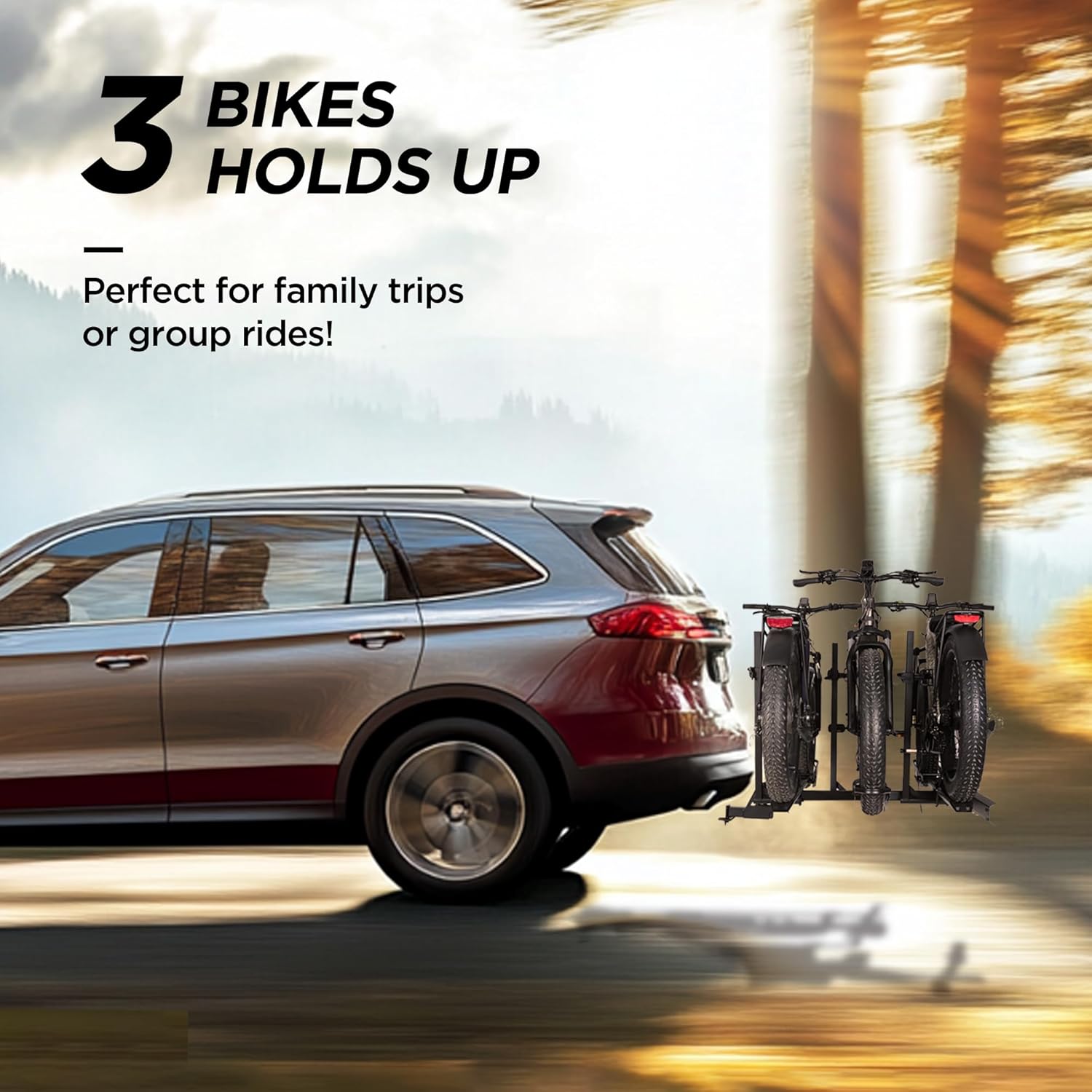 250LBS. Capacity Foldable 3-Ebike Rack with Ramp for Car SUV RV Truck Trailer and Van, 2 Inch Receiver