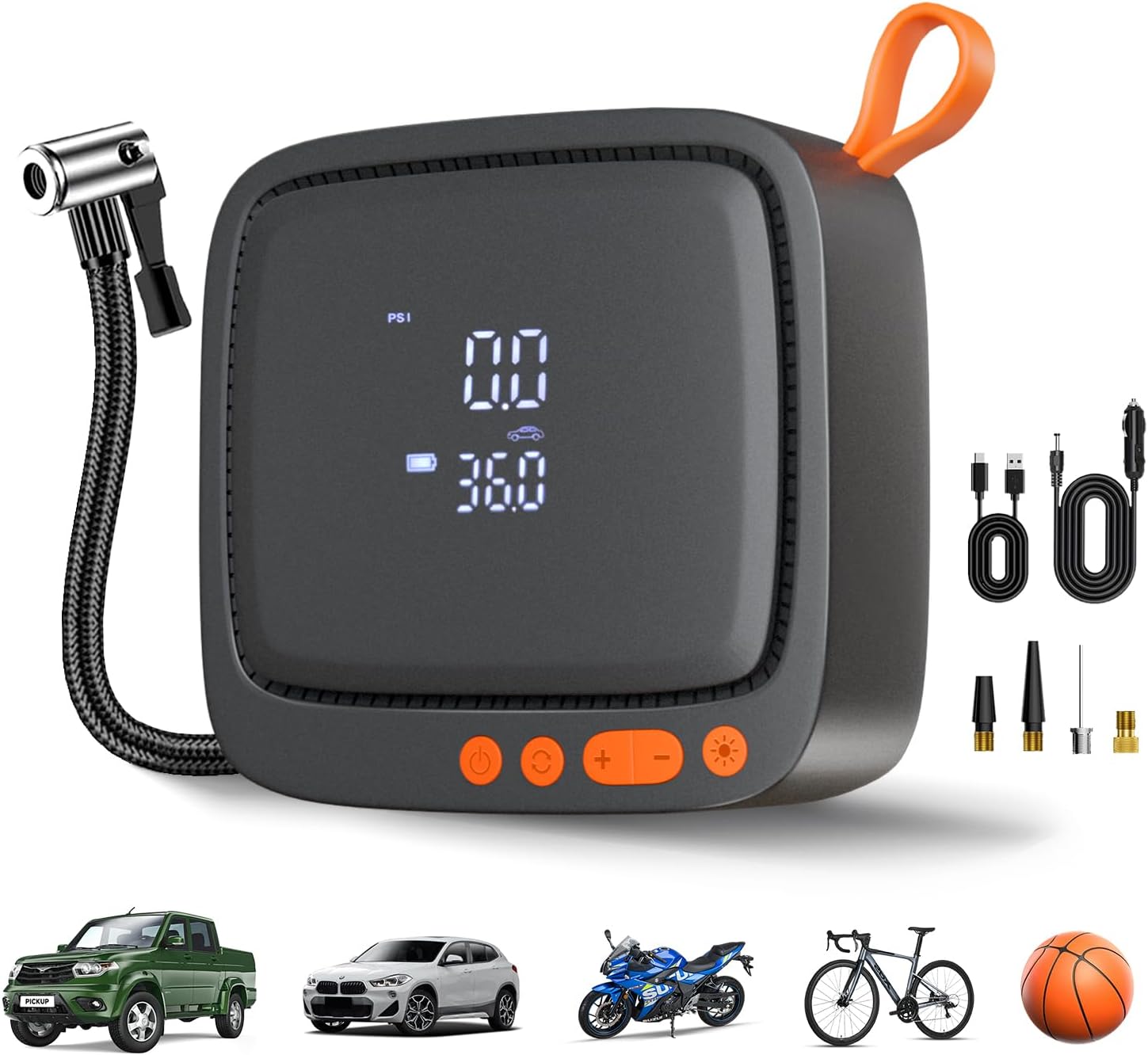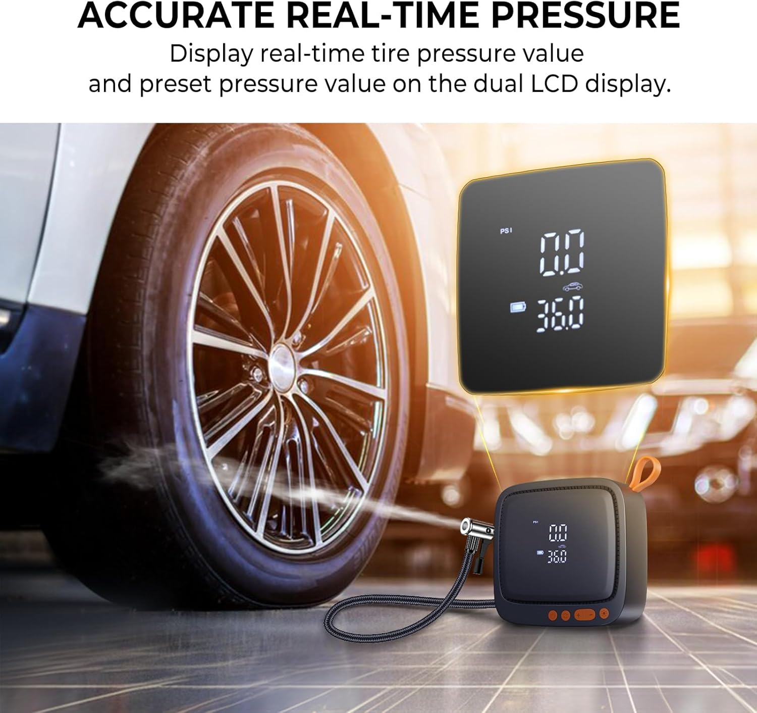 AP22 Tire Inflator Portable Air Compressor, 150 PSI Faster Inflation Cordless Air Pump, Dual Power & Digital LCD Display, Auto Shut-Off, Tire Inflator for Car, Bicycle, Motorcycle, Ball