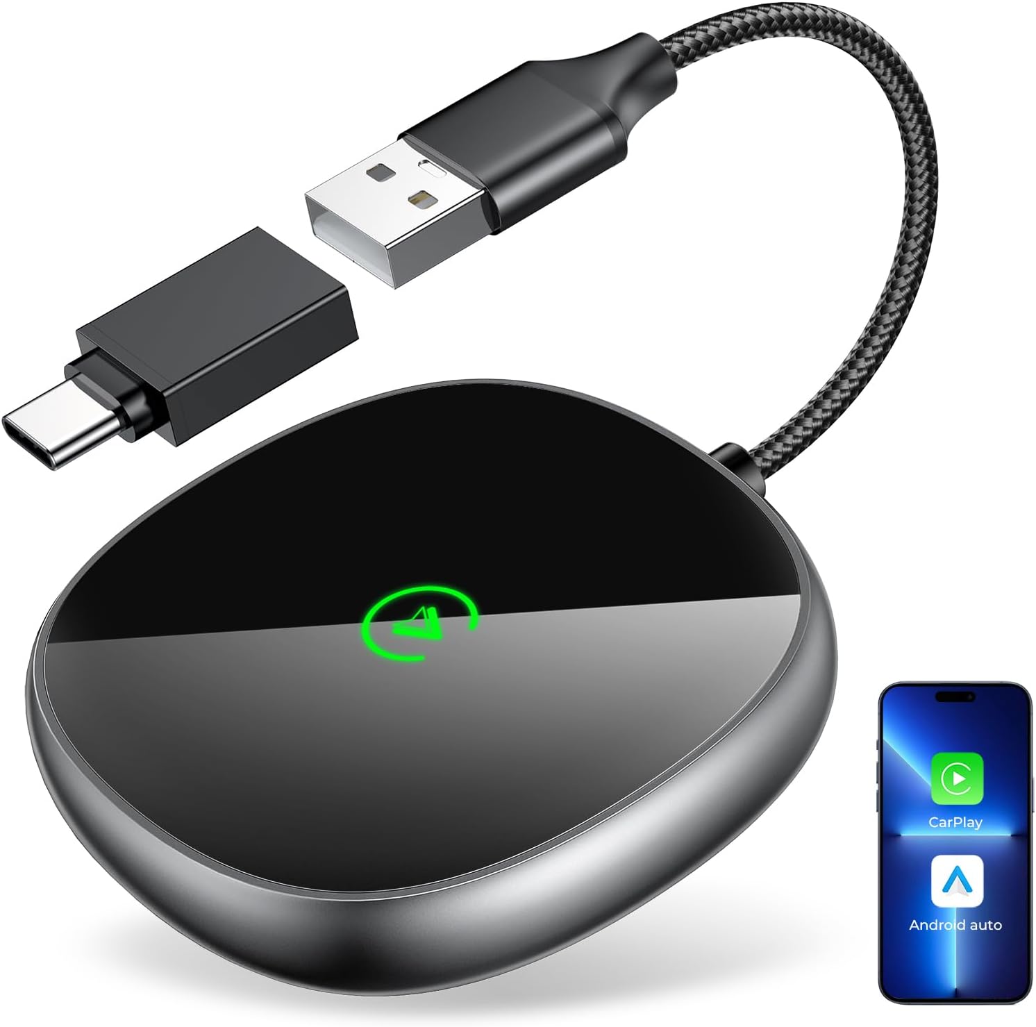 - 2-in-1 Wireless Freedom: Transform wired CarPlay/Android Auto to wireless instantly! Ditch messy cables while keeping full access to navigation, music, calls, and voice assistants - all from your wireless carplay adapter